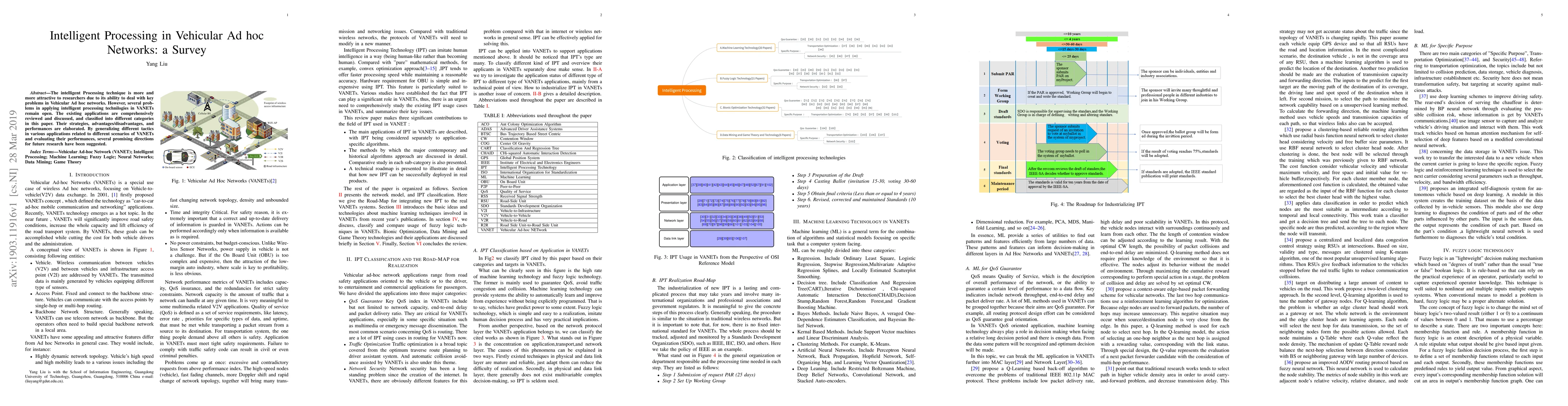The intelligent Processing technique is more and more attractive to researchers due to its ability to deal with key problems in Vehicular Ad hoc networks. However, several problems in applying intelligent processing technologies in VANETs remain open. The existing applications are comprehensively reviewed and discussed, and classified into different categories in this paper. Their strategies, advantages/disadvantages, and performances are elaborated. By generalizing different tactics in various applications related to different scenarios of VANETs and evaluating their performances, several promising directions for future research have been suggested.