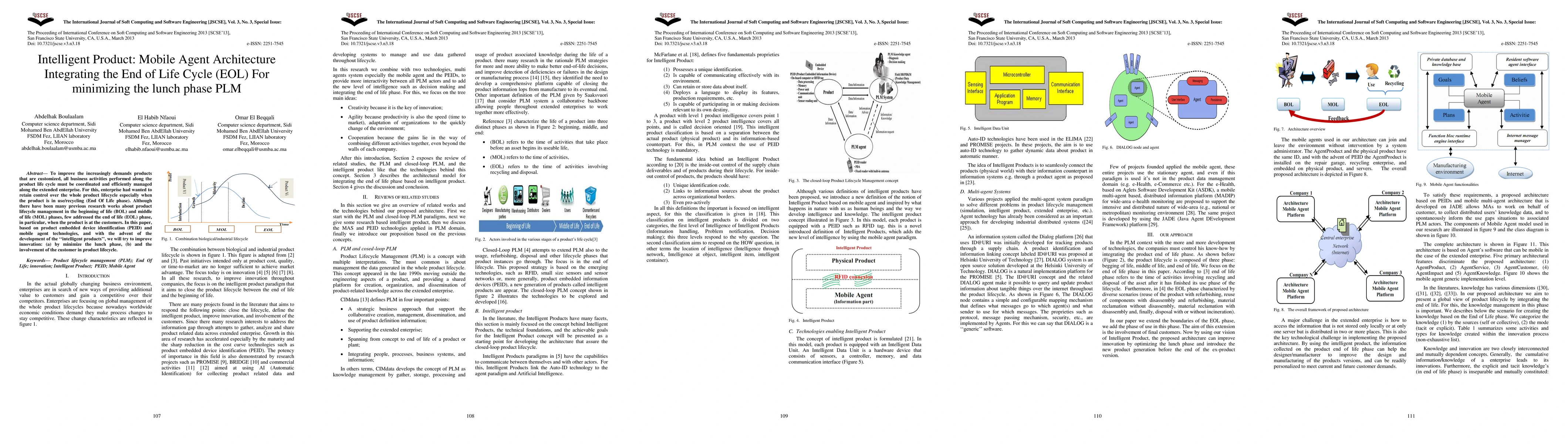 To improve the increasingly demands products that are customized, all business activities performed along the product life cycle must be coordinated and efficiently managed along the extended enterprise. For this, enterprise had wanted to retain control over the whole product lifecycle especially when the product is in use/recycling (End Of Life phase). Although there have been many previous research works about product lifecycle management in the beginning of life (BOL) and middle of life (MOL) phases, few addressed the end of life (EOL) phase, in particular, when the product is at the customers. In this paper, based on product embedded device identification (PEID) and mobile agent technologies, and with the advent of the development of the "intelligent products", we will try to improve innovation: (a) by minimize the lunch phase, (b) and the involvement of the customer in product lifecycle.