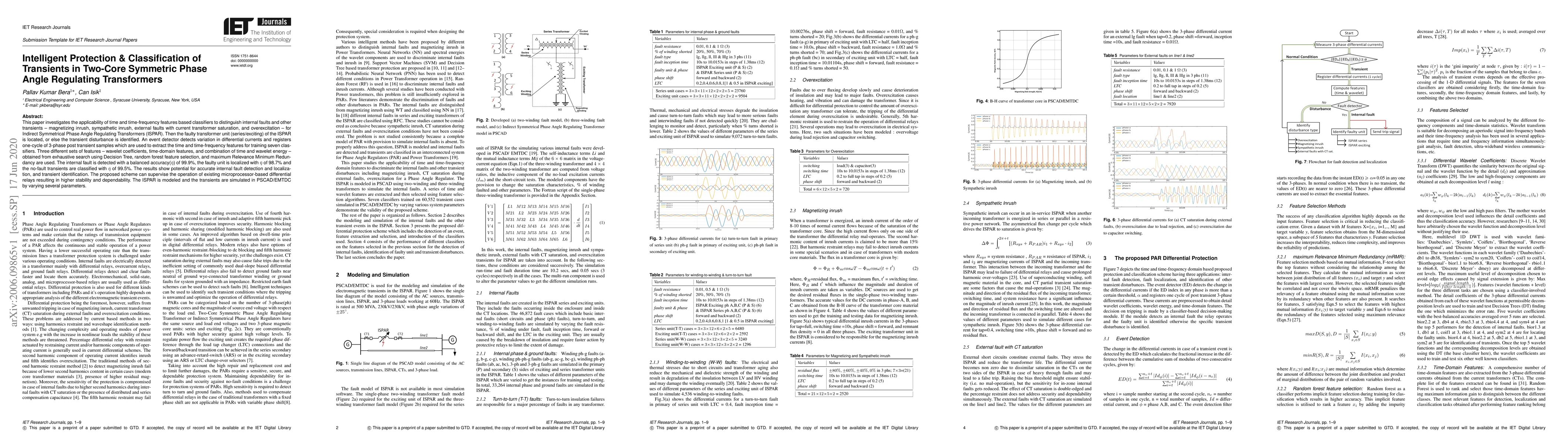 This paper proposes a time and time-frequency feature-based classification method to accurately detect and classify internal faults and transients in Indirect Symmetrical Phase Angle Regulating Transformers (ISPAR). The method achieves high accuracy in fault detection, localization, and transient classification, potentially enhancing the reliability of existing differential relays.
