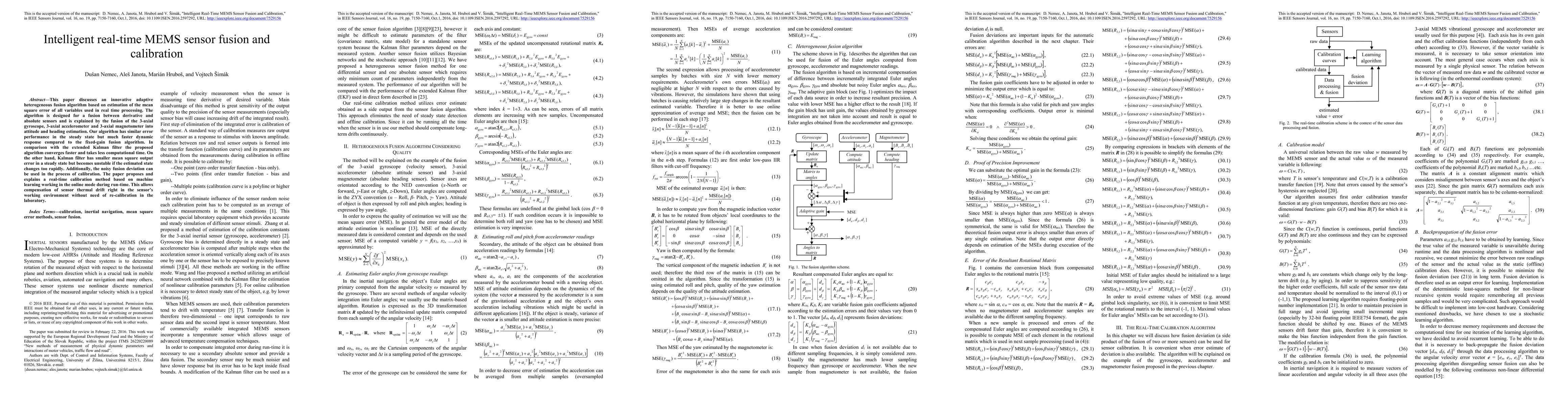 This research is significant for improving real-time sensor fusion and calibration in MEMS sensors, which are crucial for various applications including inertial navigation systems, robotics, and autonomous vehicles.