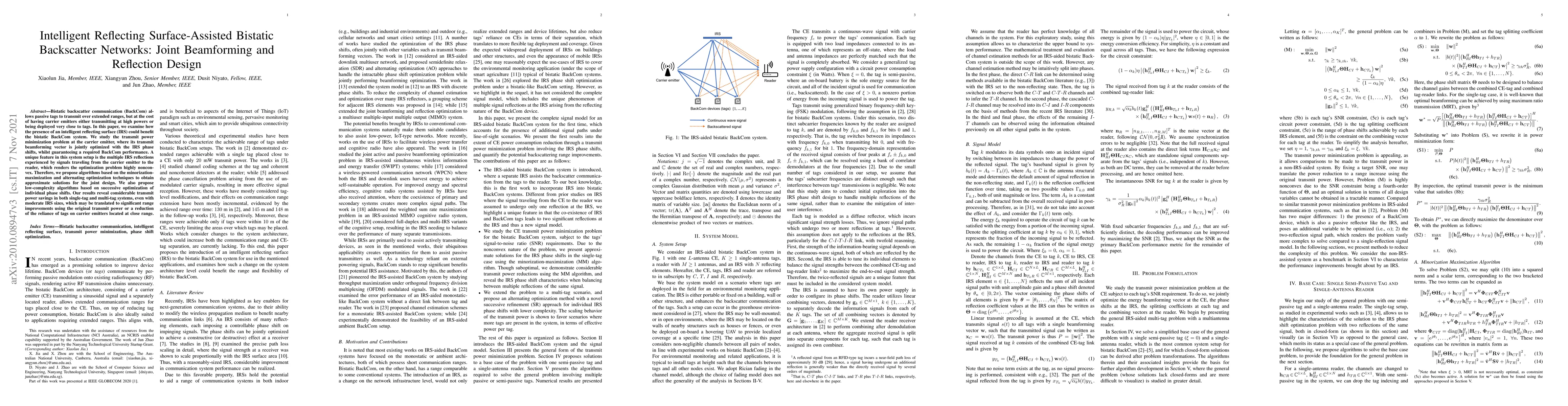 The authors propose algorithms to optimize joint beamforming and reflection design with IRS phase shifts, leading to considerable reductions in required carrier emitter powers.