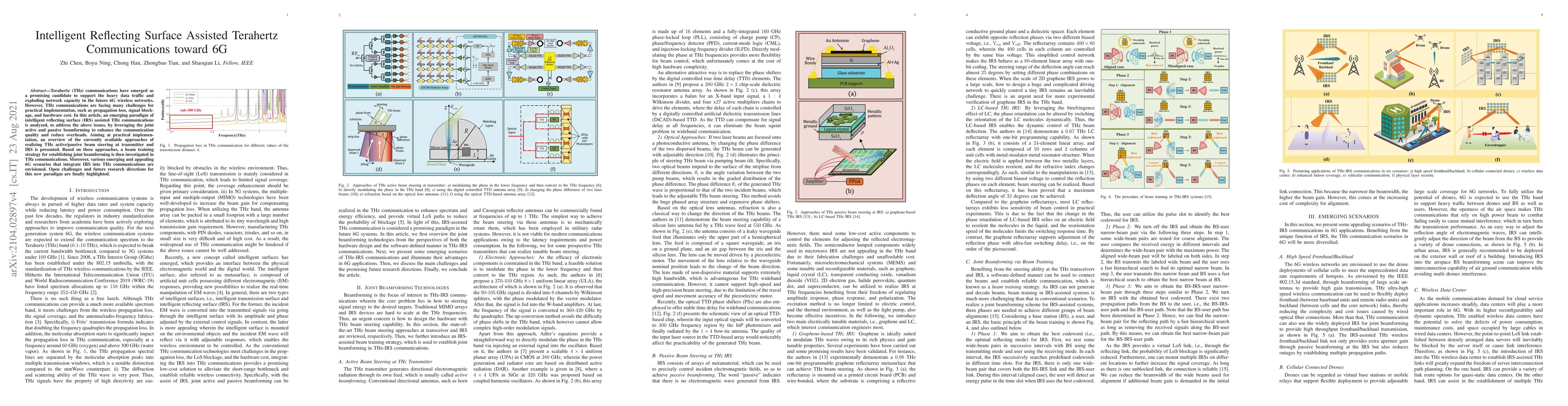This paper explores intelligent reflecting surface (IRS) assisted terahertz (THz) communications for 6G networks, addressing challenges like propagation loss and signal blockage through joint active and passive beamforming. It also outlines practical approaches for THz beam steering and discusses potential 6G scenarios integrating IRS, while highlighting future research directions.