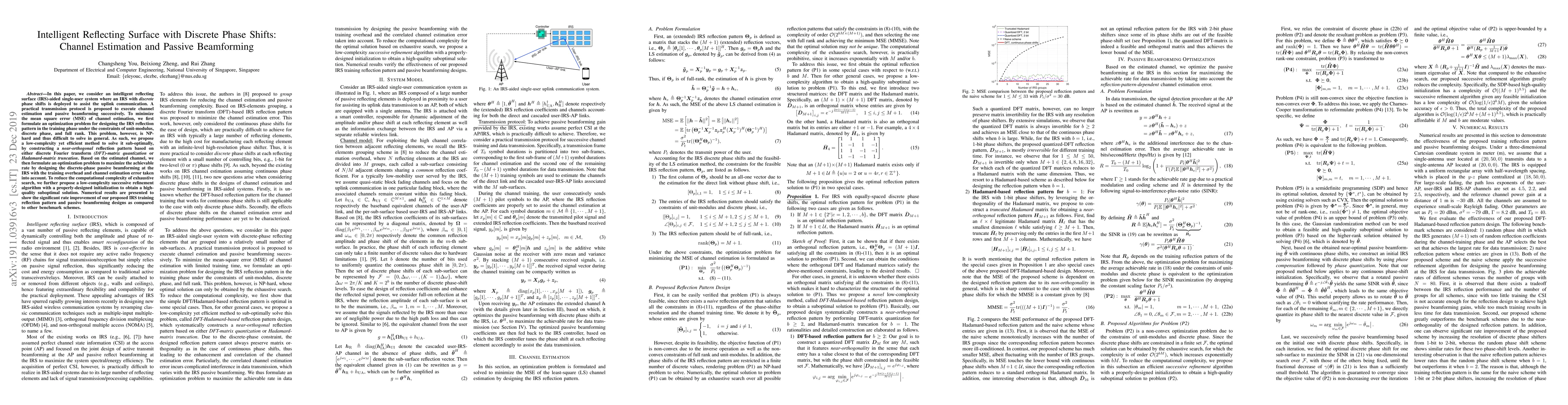 This paper proposes a practical protocol for an IRS-aided single-user system with discrete phase shifts, focusing on minimizing channel estimation mean square error and optimizing passive beamforming. It introduces a low-complexity method for designing the IRS reflection pattern and a successive refinement algorithm for efficient beamforming, achieving significant rate improvements.