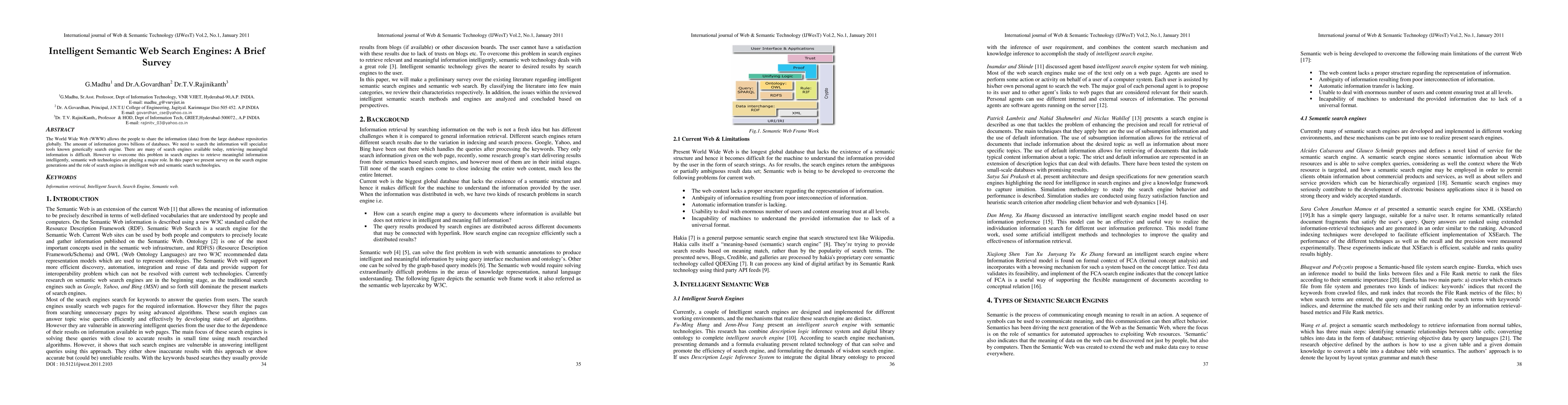 This paper surveys the evolution of search engines, emphasizing the role of semantic web technologies in enhancing intelligent search capabilities to retrieve meaningful information from the growing volume of global databases. The focus is on how semantic web search engines address the challenges of traditional search engines.