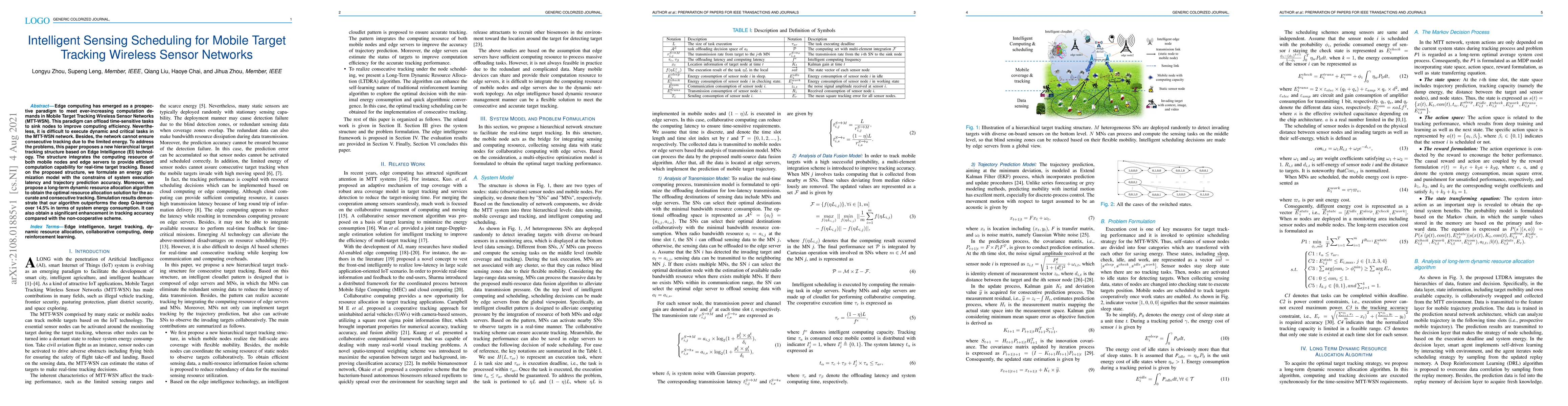 Edge computing has emerged as a prospective paradigm to meet ever-increasing computation demands in Mobile Target Tracking Wireless Sensor Networks (MTT-WSN). This paradigm can offload time-sensitive tasks to sink nodes to improve computing efficiency. Nevertheless, it is difficult to execute dynamic and critical tasks in the MTT-WSN network. Besides, the network cannot ensure consecutive tracking due to the limited energy. To address the problems, this paper proposes a new hierarchical target tracking structure based on Edge Intelligence (EI) technology. The structure integrates the computing resource of both mobile nodes and edge servers to provide efficient computation capability for real-time target tracking. Based on the proposed structure, we formulate an energy optimization model with the constrains of system execution latency and trajectory prediction accuracy. Moreover, we propose a long-term dynamic resource allocation algorithm to obtain the optimal resource allocation solution for the ac- curate and consecutive tracking. Simulation results demonstrate that our algorithm outperforms the deep Q-learning over 14.5% in terms of system energy consumption. It can also obtain a significant enhancement in tracking accuracy compared with the non-cooperative scheme.