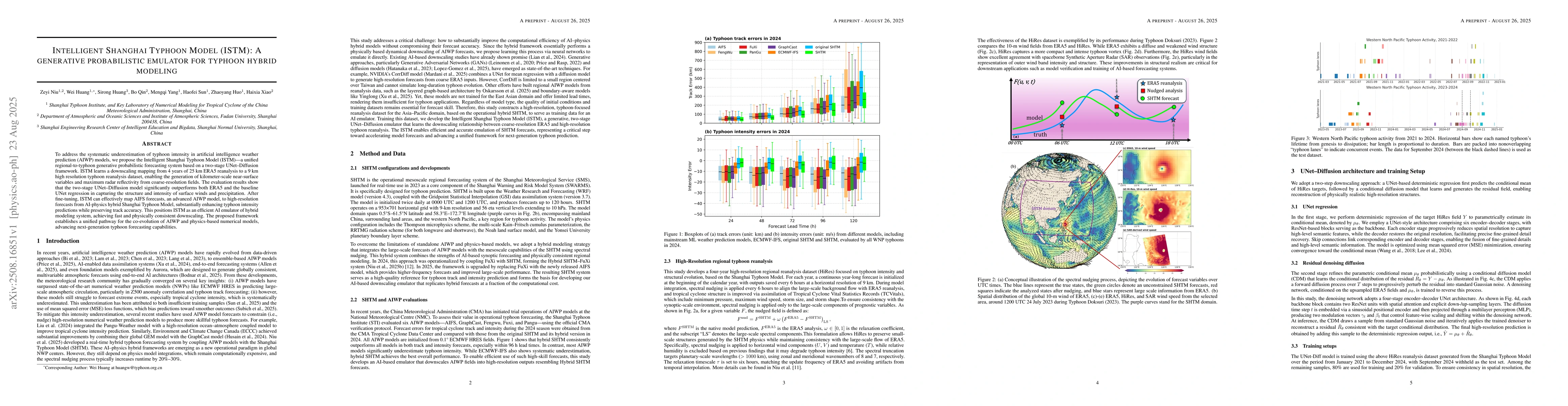 To address the systematic underestimation of typhoon intensity in artificial intelligence weather prediction (AIWP) models, we propose the Intelligent Shanghai Typhoon Model (ISTM): a unified regional-to-typhoon generative probabilistic forecasting system based on a two-stage UNet-Diffusion framework. ISTM learns a downscaling mapping from 4 years of 25 km ERA5 reanalysis to a 9 km high resolution typhoon reanalysis dataset, enabling the generation of kilometer-scale near-surface variables and maximum radar reflectivity from coarse resolution fields. The evaluation results show that the two-stage UNet-Diffusion model significantly outperforms both ERA5 and the baseline UNet regression in capturing the structure and intensity of surface winds and precipitation. After fine-tuning, ISTM can effectively map AIFS forecasts, an advanced AIWP model, to high-resolution forecasts from AI-physics hybrid Shanghai Typhoon Model, substantially enhancing typhoon intensity predictions while preserving track accuracy. This positions ISTM as an efficient AI emulator of hybrid modeling system, achieving fast and physically consistent downscaling. The proposed framework establishes a unified pathway for the co-evolution of AIWP and physics-based numerical models, advancing next-generation typhoon forecasting capabilities.