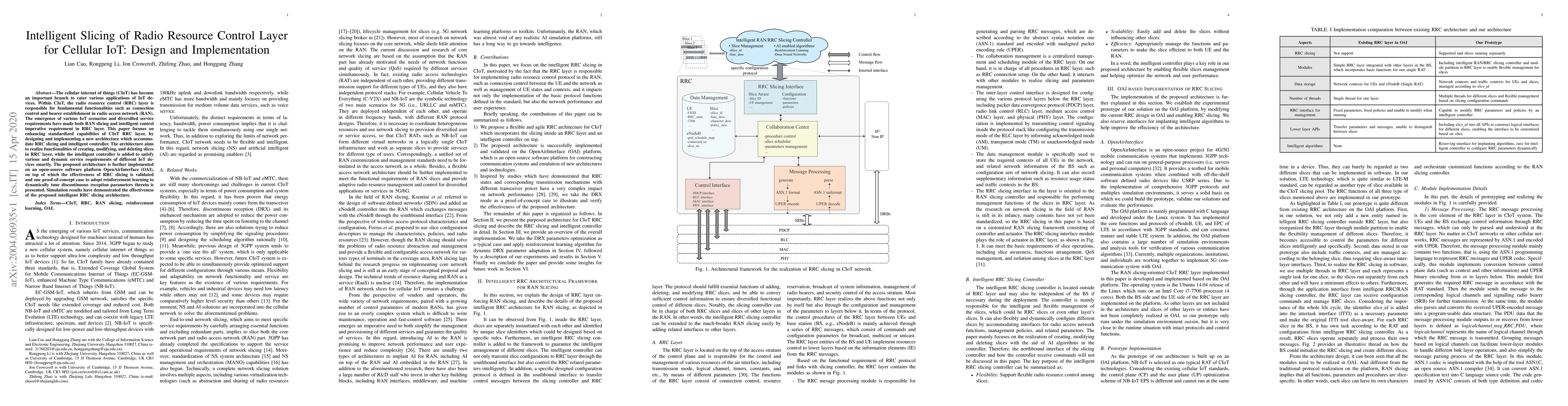 This paper proposes an intelligent slicing architecture for the radio resource control layer in cellular IoT, aiming to enhance its capabilities through RRC slicing and an intelligent controller. The architecture is implemented on OpenAirInterface, demonstrating effective RRC slicing and a proof-of-concept using reinforcement learning to dynamically adjust parameters.