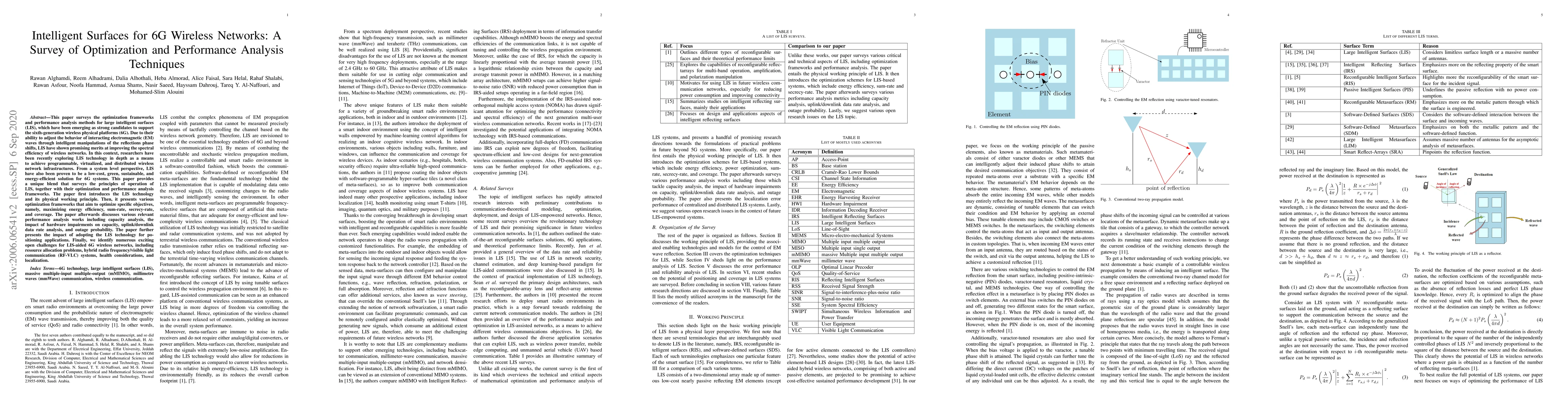 A survey of optimization techniques for large intelligent surfaces in 6G wireless networks reveals their potential to improve spectral efficiency while being a low-cost, green solution. The paper identifies open challenges and presents performance analysis methods for various objectives and applications.