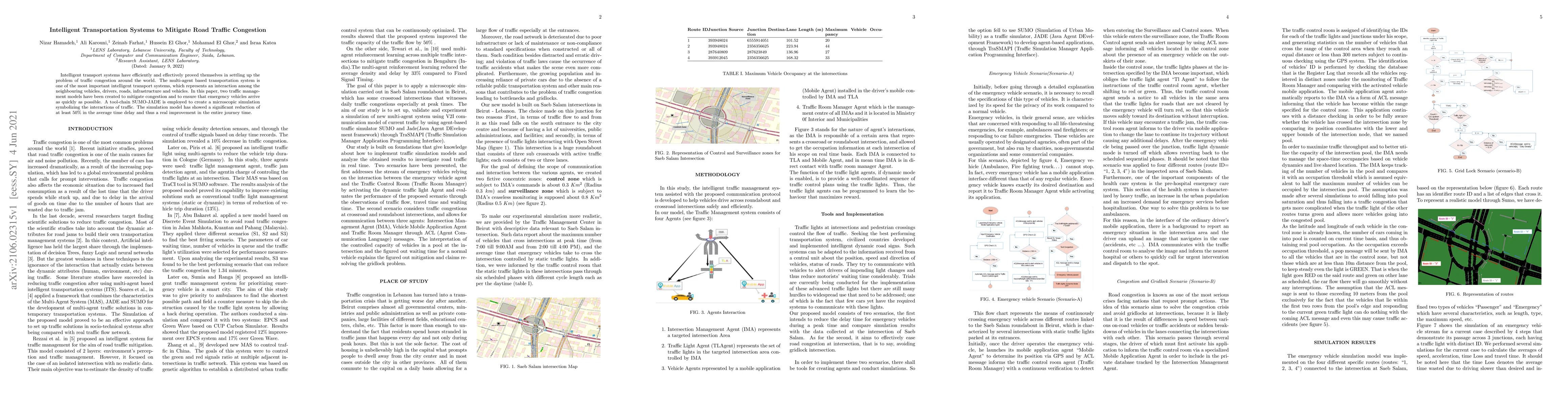 Intelligent transport systems have efficiently and effectively proved themselves in settling up the problem of traffic congestion around the world. The multi-agent based transportation system is one of the most important intelligent transport systems, which represents an interaction among the neighbouring vehicles, drivers, roads, infrastructure and vehicles. In this paper, two traffic management models have been created to mitigate congestion and to ensure that emergency vehicles arrive as quickly as possible. A tool-chain SUMO-JADE is employed to create a microscopic simulation symbolizing the interactions of traffic. The simulation model has showed a significant reduction of at least 50% in the average time delay and thus a real improvement in the entire journey time.