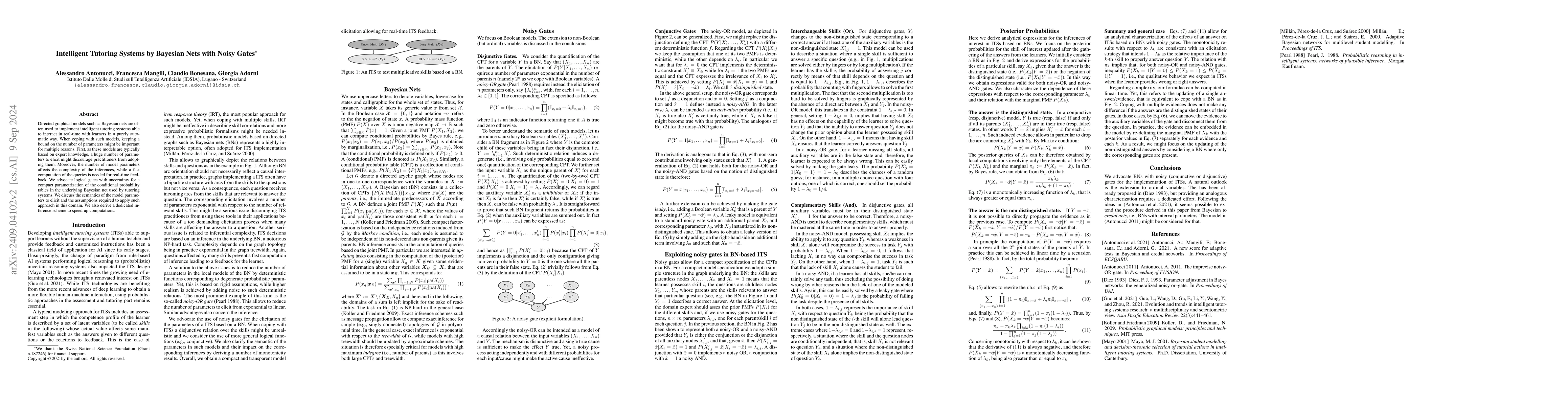 This paper proposes using Bayesian networks with noisy gates to compactly parameterize intelligent tutoring systems, aiming to balance model complexity and real-time feedback. It discusses the semantics and assumptions of the approach and presents an optimized inference scheme to enhance computational efficiency.