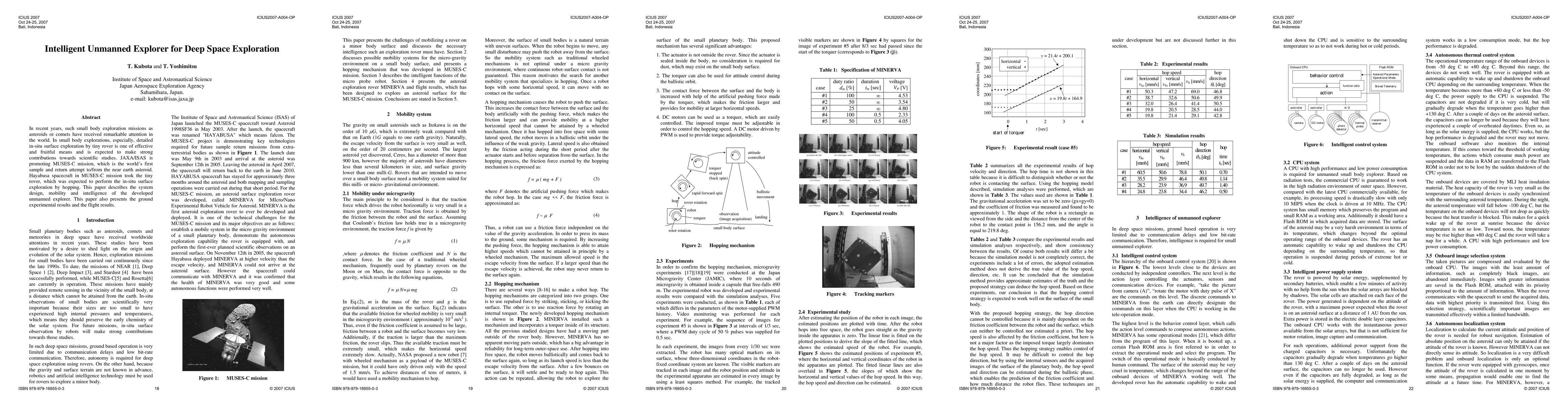 This paper describes the development of an intelligent unmanned explorer for in-situ surface exploration on asteroids and comets, with a focus on its mobility and intelligence. The system successfully performed ground experiments and flight results, contributing to future sample return missions from near-Earth asteroids.