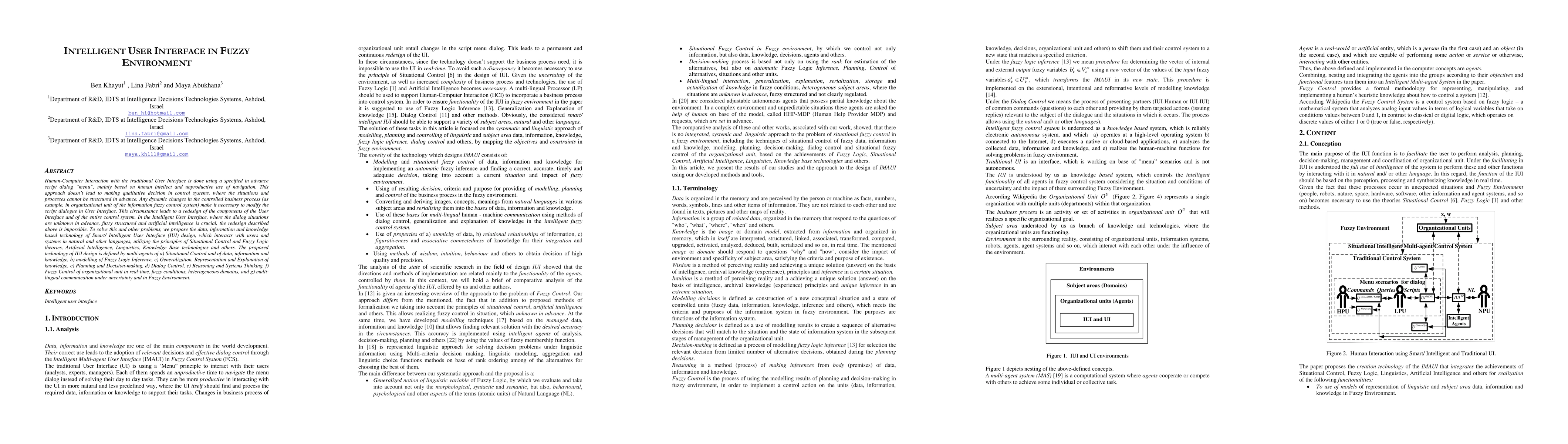 This paper proposes an Intelligent User Interface (IUI) design technology to enhance Human-Computer Interaction in dynamic, unstructured environments. It leverages fuzzy logic, Artificial Intelligence, and multi-agent systems to enable real-time adaptation and decision-making without the need for predefined scripts, addressing the challenges of uncertainty and dynamic changes in control systems.
