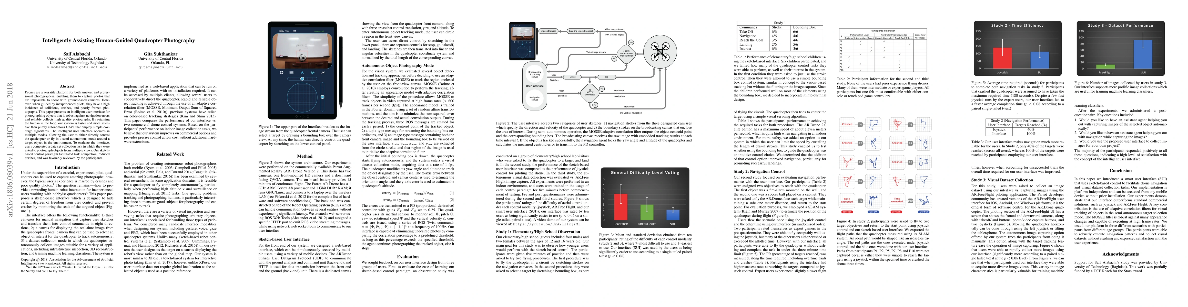 Drones are a versatile platform for both amateur and professional photographers, enabling them to capture photos that are impossible to shoot with ground-based cameras. However, when guided by inexperienced pilots, they have a high incidence of collisions, crashes, and poorly framed photographs. This paper presents an intelligent user interface for photographing objects that is robust against navigation errors and reliably collects high quality photographs. By retaining the human in the loop, our system is faster and more selective than purely autonomous UAVs that employ simple coverage algorithms. The intelligent user interface operates in multiple modes, allowing the user to either directly control the quadcopter or fly in a semi-autonomous mode around a target object in the environment. To evaluate the interface, users completed a data set collection task in which they were asked to photograph objects from multiple views. Our sketchbased control paradigm facilitated task completion, reduced crashes, and was favorably reviewed by the participants.