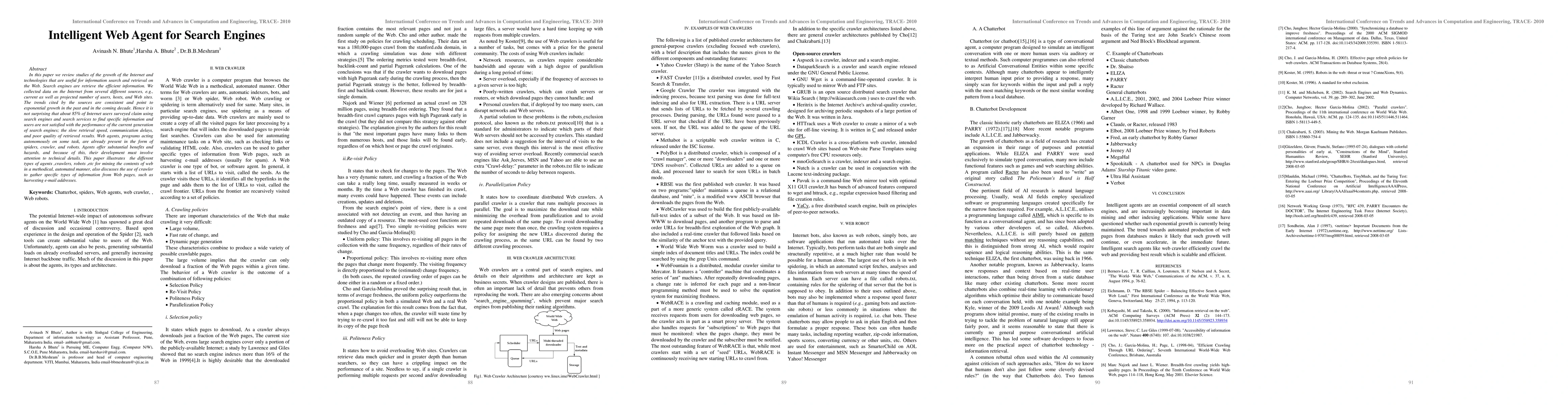 This paper reviews the growth of the Internet and technologies aiding web search, highlighting the dominance and dissatisfaction with current search engines. It discusses web agents, including crawlers and robots, that autonomously mine web content, emphasizing the need for technical detail in their development.