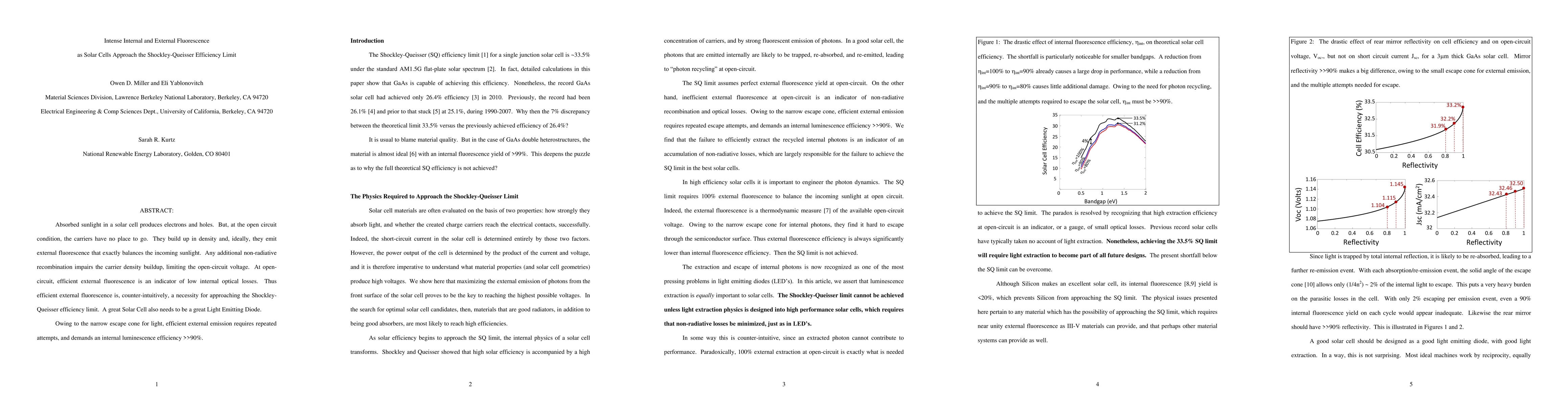 This paper explores how intense internal and external fluorescence is crucial for solar cells to approach the Shockley-Queisser efficiency limit, emphasizing that efficient external fluorescence indicates low internal optical losses and is necessary for high open-circuit voltage. Achieving this requires internal luminescence efficiency exceeding 90%.