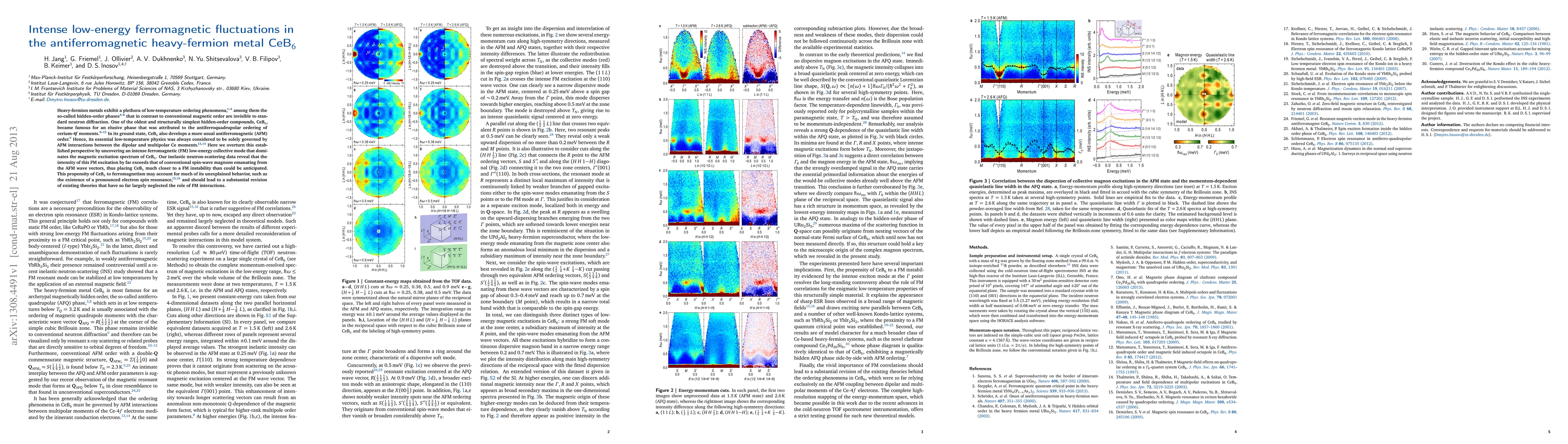 This study reveals intense low-energy ferromagnetic fluctuations in CeB6, a heavy-fermion metal previously thought to be governed by antiferromagnetic interactions. Inelastic neutron-scattering data show that these ferromagnetic excitations dominate the magnetic spectrum, challenging existing theories and suggesting a significant ferromagnetic instability.
