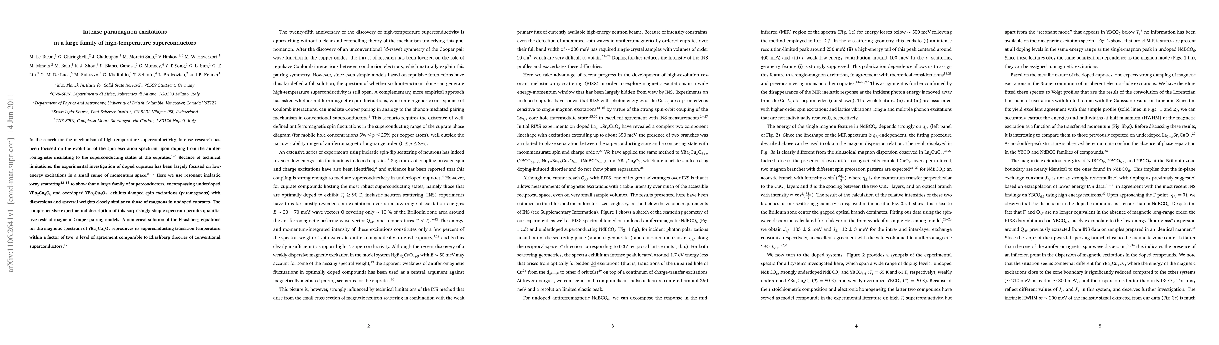 Research using resonant inelastic x-ray scattering reveals that a wide range of high-temperature superconductors exhibit similar spin excitations to undoped cuprates, with dispersions and spectral weights matching those of magnons, providing new insights into the mechanism of high-temperature superconductivity.