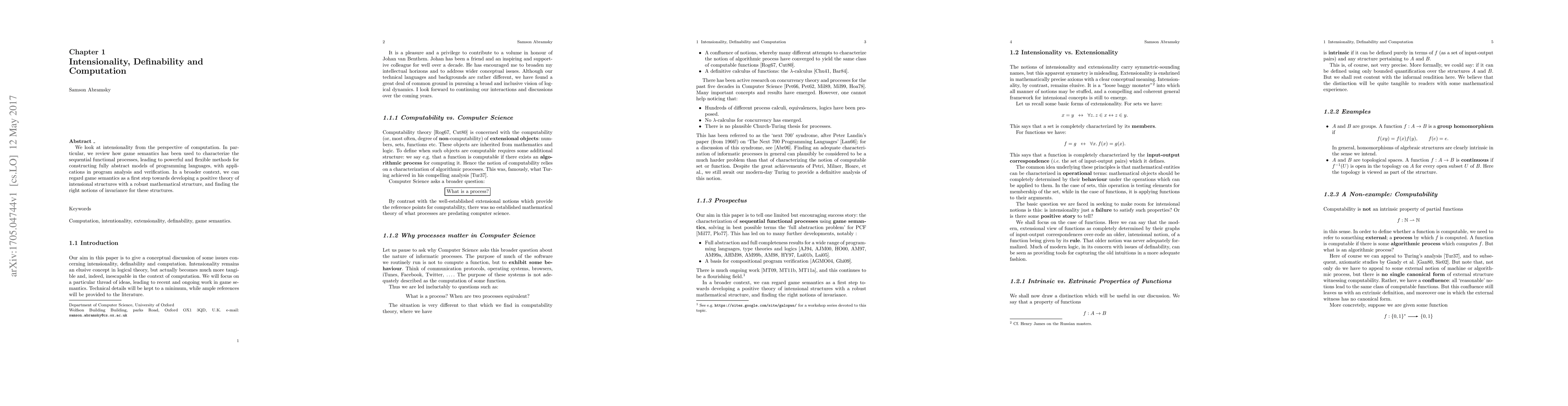 We look at intensionality from the perspective of computation. In particular, we review how game semantics has been used to characterize the sequential functional processes, leading to powerful and flexible methods for constructing fully abstract models of programming languages, with applications in program analysis and verification. In a broader context, we can regard game semantics as a first step towards developing a positive theory of intensional structures with a robust mathematical structure, and finding the right notions of invariance for these structures.