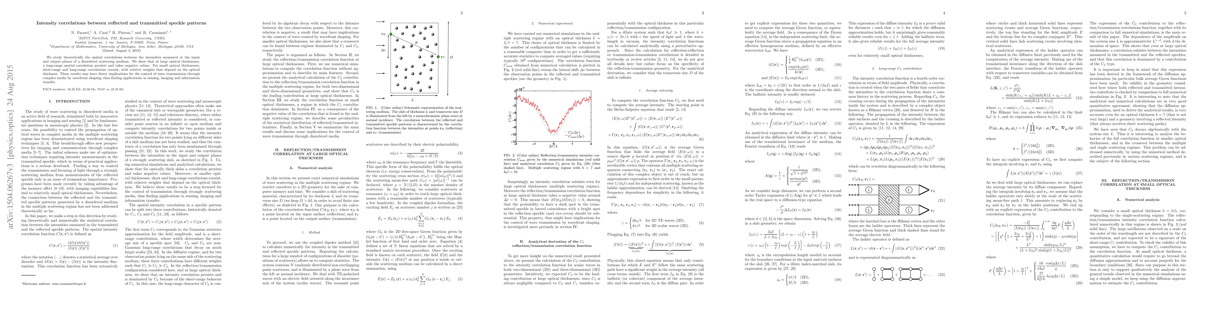 We study theoretically the spatial correlations between the intensities measured at the input and output planes of a disordered scattering medium. We show that at large optical thicknesses, a long-range spatial correlation persists and takes negative values. For small optical thicknesses, short-range and long-range correlations coexist, with relative weights that depend on the optical thickness. These results may have direct implications for the control of wave transmission through complex media by wavefront shaping, thus finding applications in sensing, imaging and information transfer.