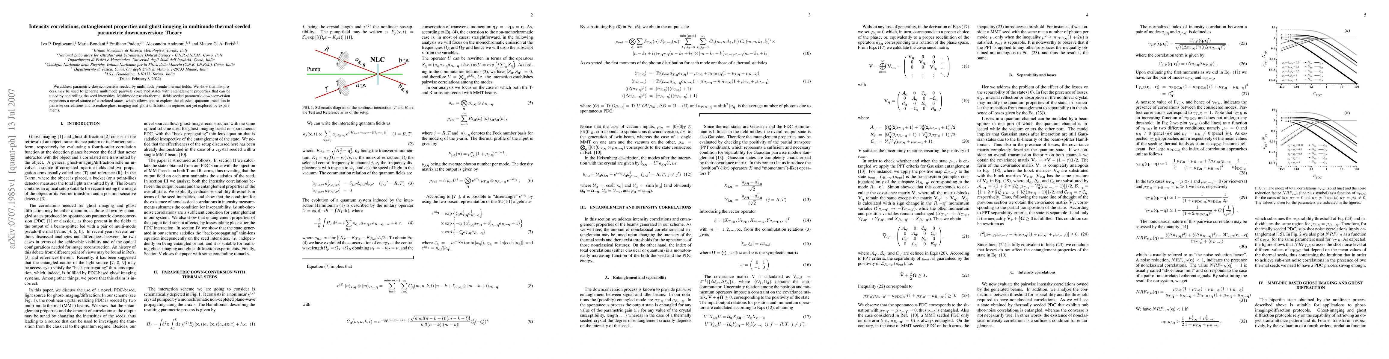 The paper presents a detailed theoretical analysis of a novel source of correlated states based on multimode thermal-seeded parametric downconversion, providing insights into entanglement properties and their control through seed intensity.