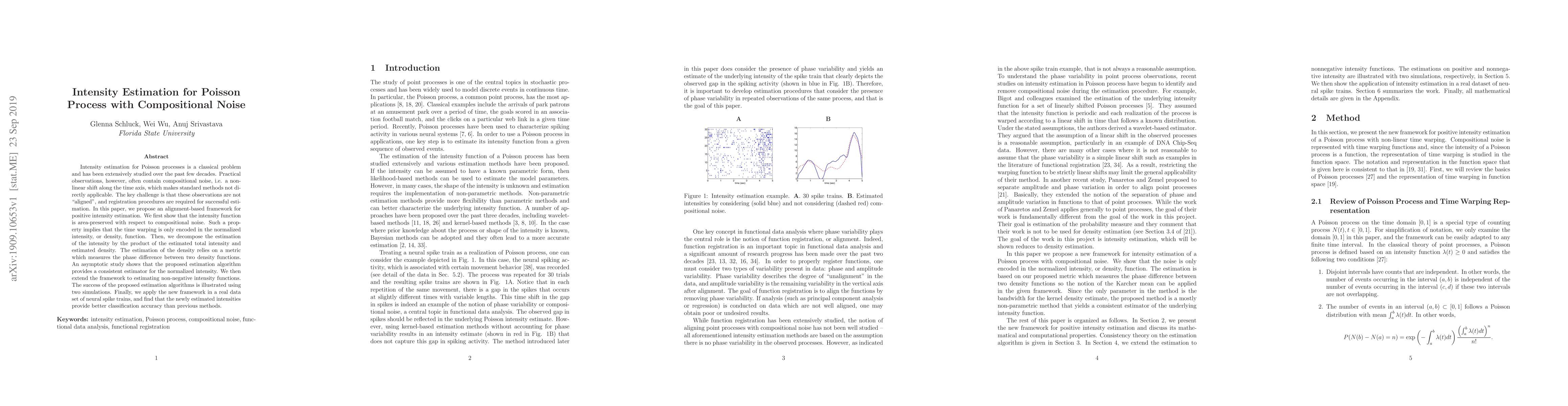 This paper proposes an alignment-based framework for estimating intensities in Poisson processes affected by compositional noise, which introduces a nonlinear time shift. The authors decompose the estimation into total intensity and density, showing consistency of the proposed method through simulations and real neural spike train data.