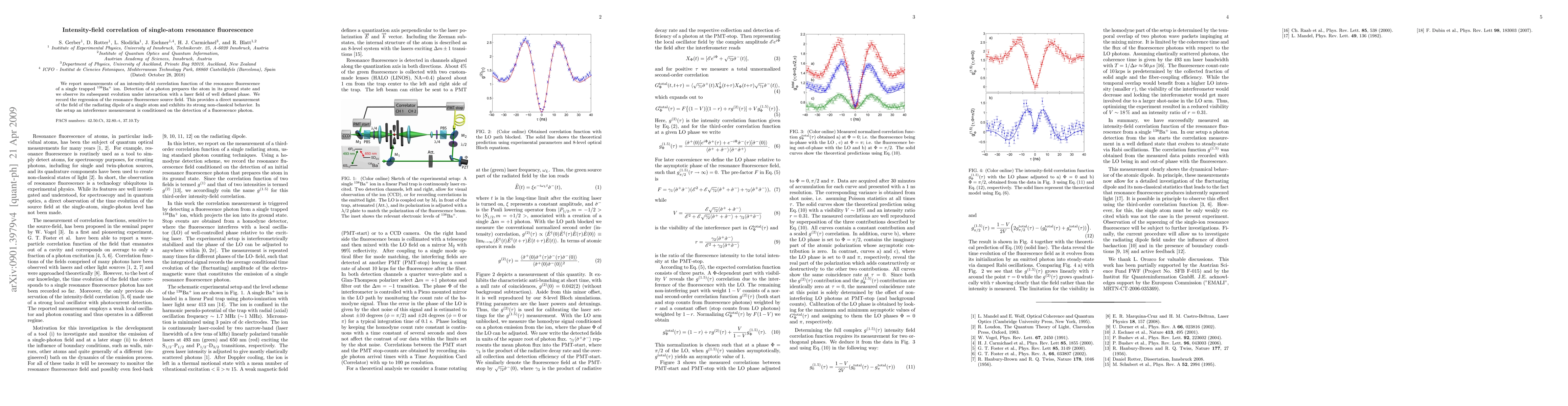 The paper presents a method for measuring the intensity-field correlation function of single-atom resonance fluorescence, offering insights into the dynamic behavior of the atomic dipole.