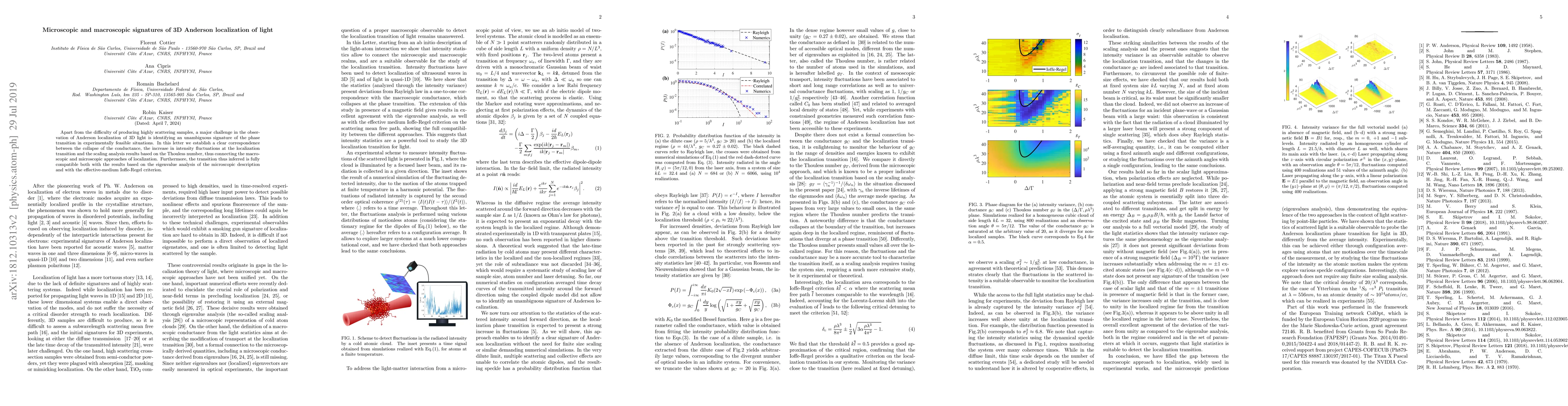 Apart from the difficulty of producing highly scattering samples, a major challenge in the observation of Anderson localization of 3D light is identifying an unambiguous signature of the phase transition in experimentally feasible situations. In this letter we establish a clear correspondence between the collapse of the conductance, the increase in intensity fluctuations at the localization transition and the scaling analysis results based on the Thouless number, thus connecting the macroscopic and microscopic approaches of localization. Furthermore, the transition thus inferred is fully compatible both with the results based on the eigenvalue analysis of the microscopic description and with the effective-medium Ioffe-Regel criterion.