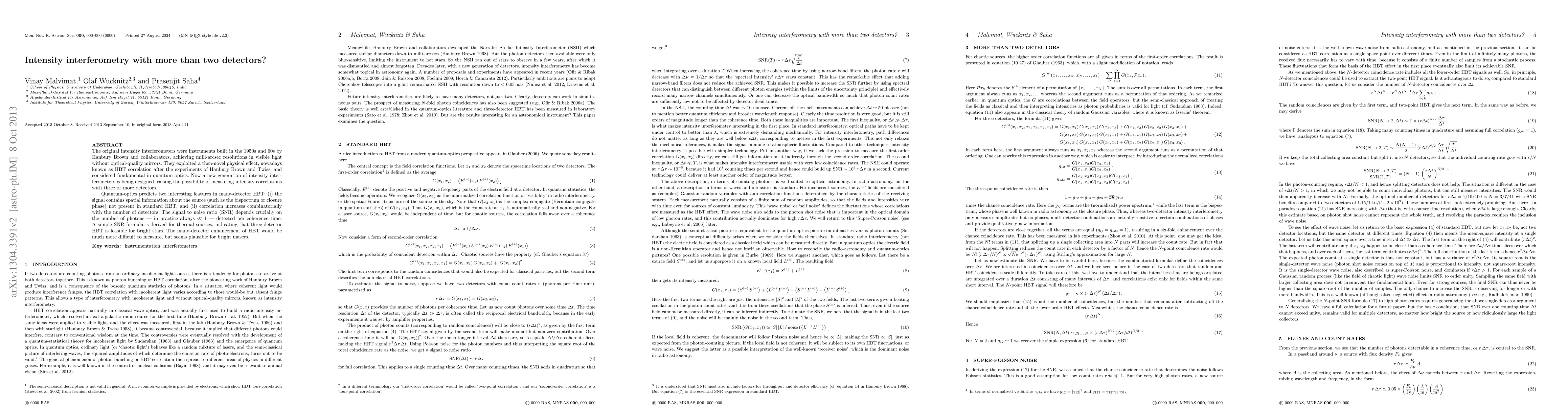 This research explores the potential of intensity interferometry with three or more detectors, predicting a combinatorial increase in HBT correlation. It suggests measurable three-detector HBT correlations for bright stars, offering new image information not available in standard HBT.