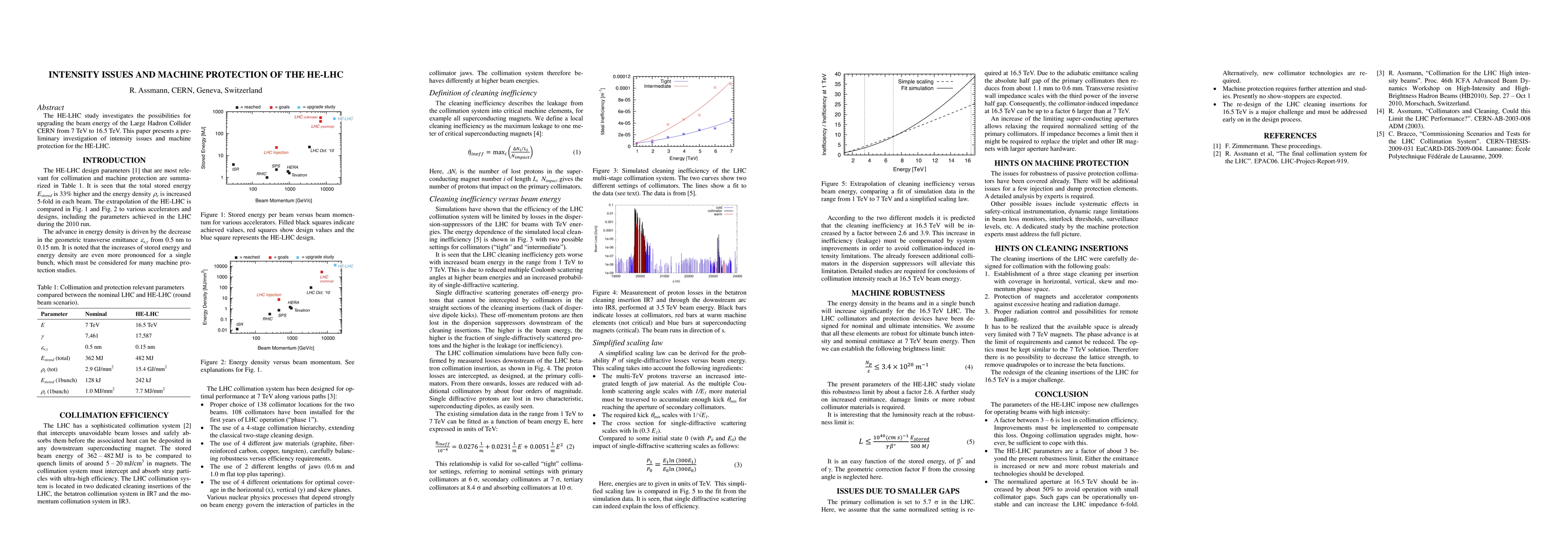The HE-LHC study investigates the possibilities for upgrading the beam energy of the Large Hadron Collider CERN from 7 TeV to 16.5 TeV. This paper presents a preliminary investigation of intensity issues and machine protection for the HE-LHC.