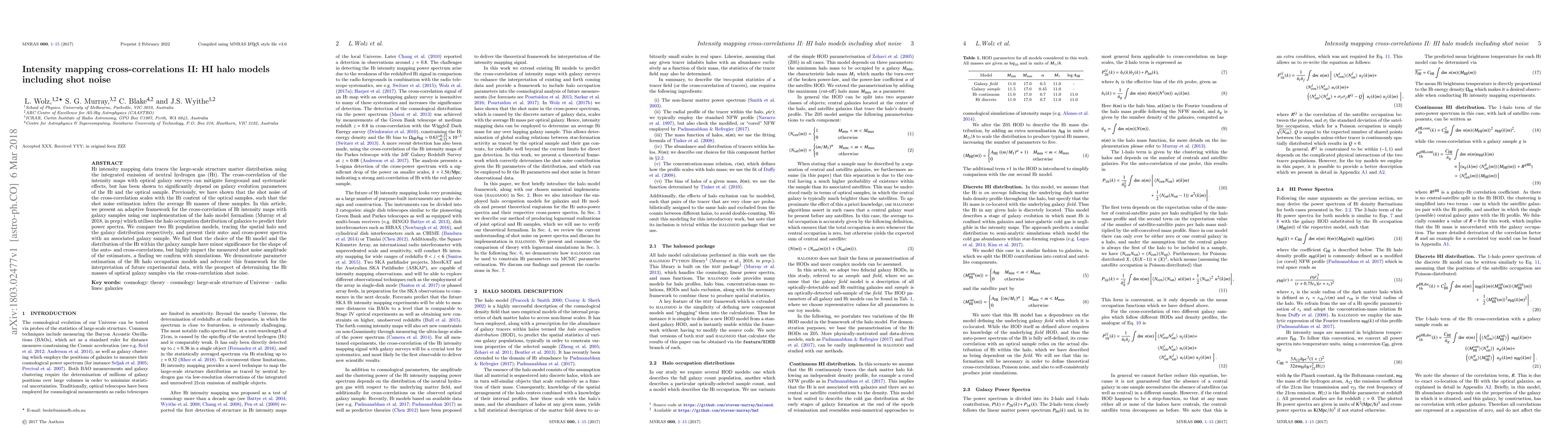 HI intensity mapping data traces the large-scale structure matter distribution using the integrated emission of neutral hydrogen gas (HI). The cross-correlation of the intensity maps with optical galaxy surveys can mitigate foreground and systematic effects, but has been shown to significantly depend on galaxy evolution parameters of the HI and the optical sample. Previously, we have shown that the shot noise of the cross-correlation scales with the HI content of the optical samples, such that the shot noise estimation infers the average HI masses of these samples. In this article, we present an adaptive framework for the cross-correlation of HI intensity maps with galaxy samples using our implementation of the halo model formalism (Murray et al 2018, in prep) which utilises the halo occupation distribution of galaxies to predict their power spectra. We compare two HI population models, tracing the spatial halo and the galaxy distribution respectively, and present their auto- and cross-power spectra with an associated galaxy sample. We find that the choice of the HI model and the distribution of the HI within the galaxy sample have minor significance for the shape of the auto- and cross-correlations, but highly impact the measured shot noise amplitude of the estimators, a finding we confirm with simulations. We demonstrate parameter estimation of the HI halo occupation models and advocate this framework for the interpretation of future experimental data, with the prospect of determining the HI masses of optical galaxy samples via the cross-correlation shot noise.