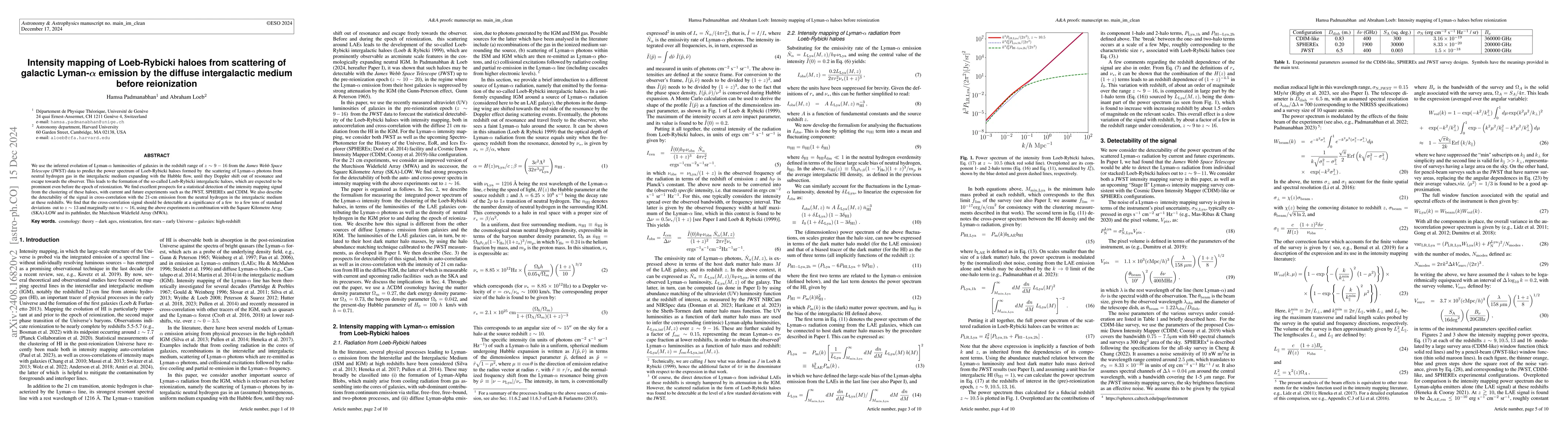 We use the inferred evolution of Lyman-$\alpha$ luminosities of galaxies in the redshift range of $z \sim 9-16$ from the $James \ Webb \ Space \ Telescope$ (JWST) data to predict the power spectrum of Loeb-Rybicki haloes formed by scattered Lyman-$\alpha$ radiation in the diffuse intergalactic hydrogen before reionization. We find excellent prospects for a statistical detection of the intensity mapping signal with current and future experiments such as the JWST, SPHEREx and CDIM. We also describe the detectability of the signal in cross-correlation with the 21-cm emission from atomic hydrogen in the intergalactic medium at these redshifts. We find that the cross-correlation signal should be detectable at a significance of a few tens of standard deviations out to $z \sim 16$ using the above experiments in combination with the Square Kilometre Array (SKA)-LOW and its pathfinder, the Murchison Widefield Array (MWA).