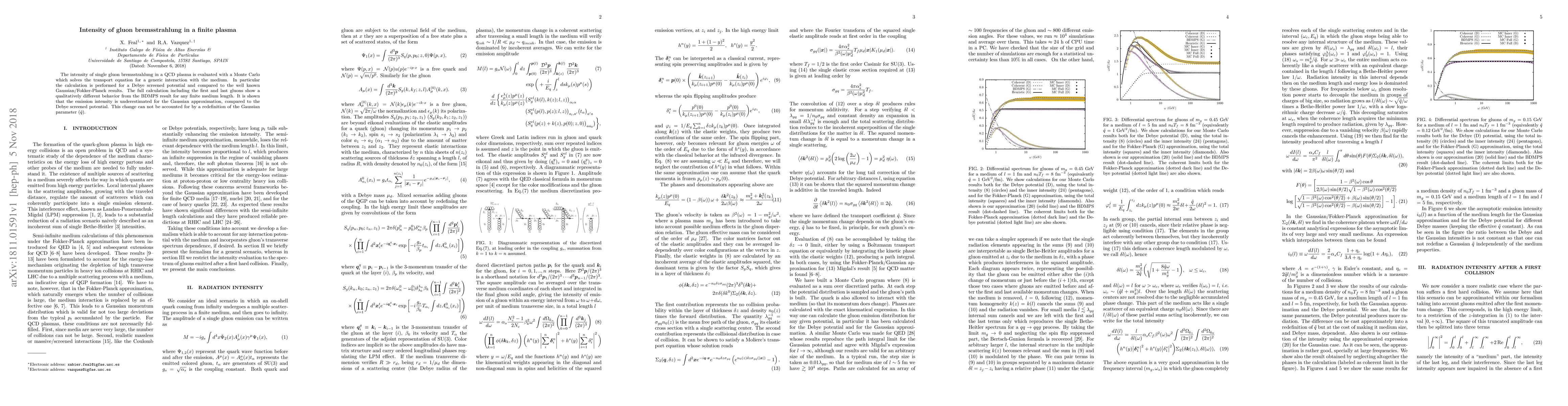 The intensity of single gluon bremsstrahlung in a QCD plasma is evaluated with a Monte Carlo which solves the transport equation for a generic interaction with the medium. In particular the calculation is performed for a Debye screened potential and compared to the well known Gaussian/Fokker-Planck results. The full calculation including the first and last gluons show a qualitatively different behavior from the BDMPS result for any finite medium length. It is shown that the emission intensity is underestimated for the Gaussian approximation, compared to the Debye screened potential. This change can not be accounted for by a redefinition of the Gaussian parameter ($\hat{q}$).