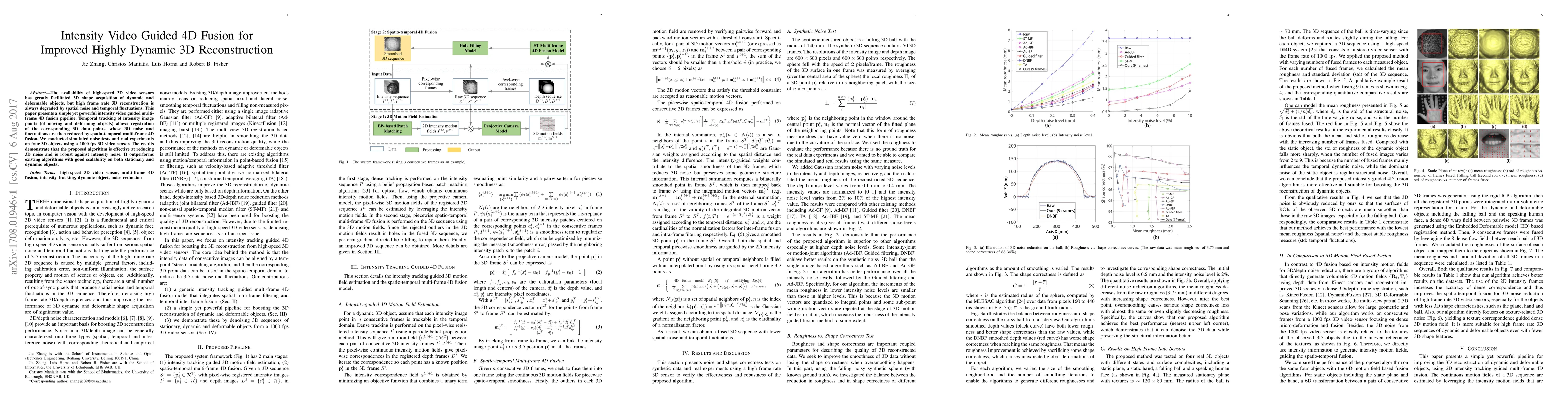 The availability of high-speed 3D video sensors has greatly facilitated 3D shape acquisition of dynamic and deformable objects, but high frame rate 3D reconstruction is always degraded by spatial noise and temporal fluctuations. This paper presents a simple yet powerful intensity video guided multi-frame 4D fusion pipeline. Temporal tracking of intensity image points (of moving and deforming objects) allows registration of the corresponding 3D data points, whose 3D noise and fluctuations are then reduced by spatio-temporal multi-frame 4D fusion. We conducted simulated noise tests and real experiments on four 3D objects using a 1000 fps 3D video sensor. The results demonstrate that the proposed algorithm is effective at reducing 3D noise and is robust against intensity noise. It outperforms existing algorithms with good scalability on both stationary and dynamic objects.