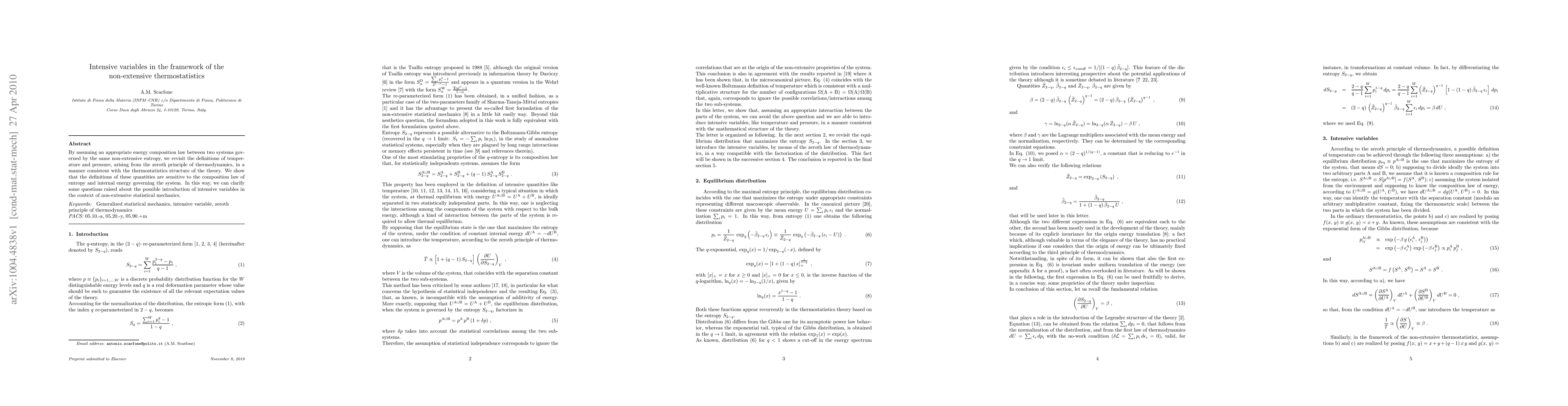 This paper redefines temperature and pressure within the framework of non-extensive thermostatistics, showing their dependency on the chosen entropy and energy composition laws, and addresses the introduction of intensive variables in this context.