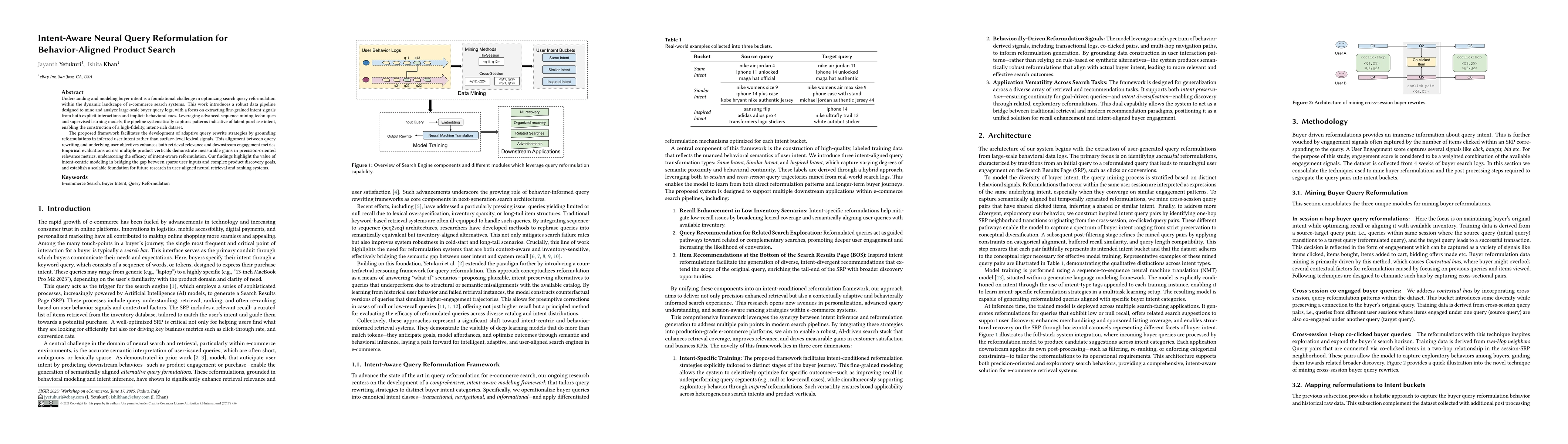 Understanding and modeling buyer intent is a foundational challenge in optimizing search query reformulation within the dynamic landscape of e-commerce search systems. This work introduces a robust data pipeline designed to mine and analyze large-scale buyer query logs, with a focus on extracting fine-grained intent signals from both explicit interactions and implicit behavioral cues. Leveraging advanced sequence mining techniques and supervised learning models, the pipeline systematically captures patterns indicative of latent purchase intent, enabling the construction of a high-fidelity, intent-rich dataset. The proposed framework facilitates the development of adaptive query rewrite strategies by grounding reformulations in inferred user intent rather than surface-level lexical signals. This alignment between query rewriting and underlying user objectives enhances both retrieval relevance and downstream engagement metrics. Empirical evaluations across multiple product verticals demonstrate measurable gains in precision-oriented relevance metrics, underscoring the efficacy of intent-aware reformulation. Our findings highlight the value of intent-centric modeling in bridging the gap between sparse user inputs and complex product discovery goals, and establish a scalable foundation for future research in user-aligned neural retrieval and ranking systems.