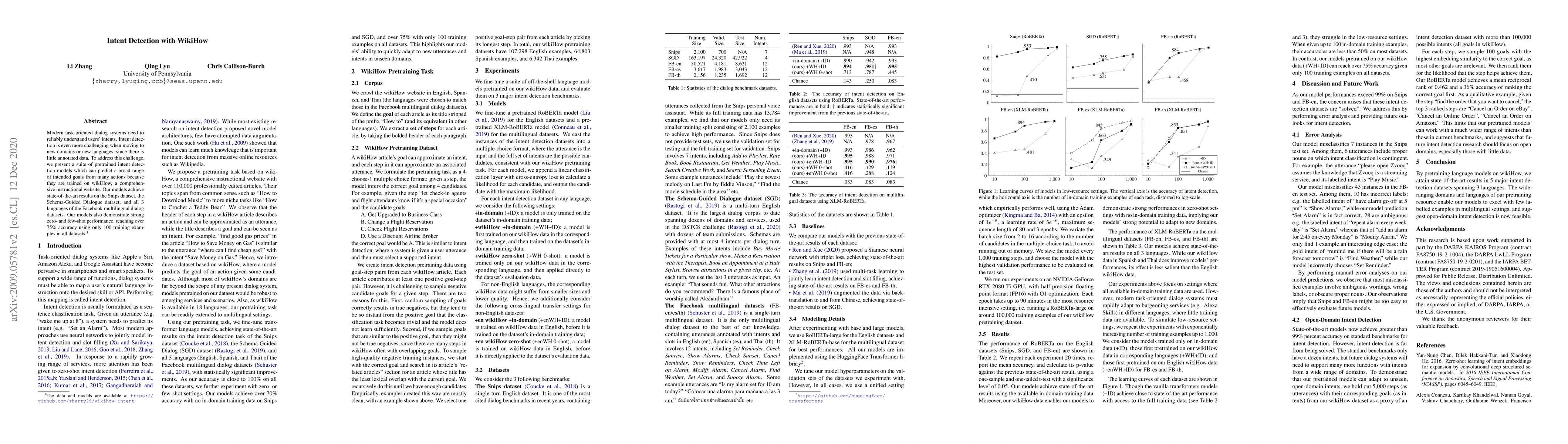 Modern task-oriented dialog systems need to reliably understand users' intents. Intent detection is most challenging when moving to new domains or new languages, since there is little annotated data. To address this challenge, we present a suite of pretrained intent detection models. Our models are able to predict a broad range of intended goals from many actions because they are trained on wikiHow, a comprehensive instructional website. Our models achieve state-of-the-art results on the Snips dataset, the Schema-Guided Dialogue dataset, and all 3 languages of the Facebook multilingual dialog datasets. Our models also demonstrate strong zero- and few-shot performance, reaching over 75% accuracy using only 100 training examples in all datasets.