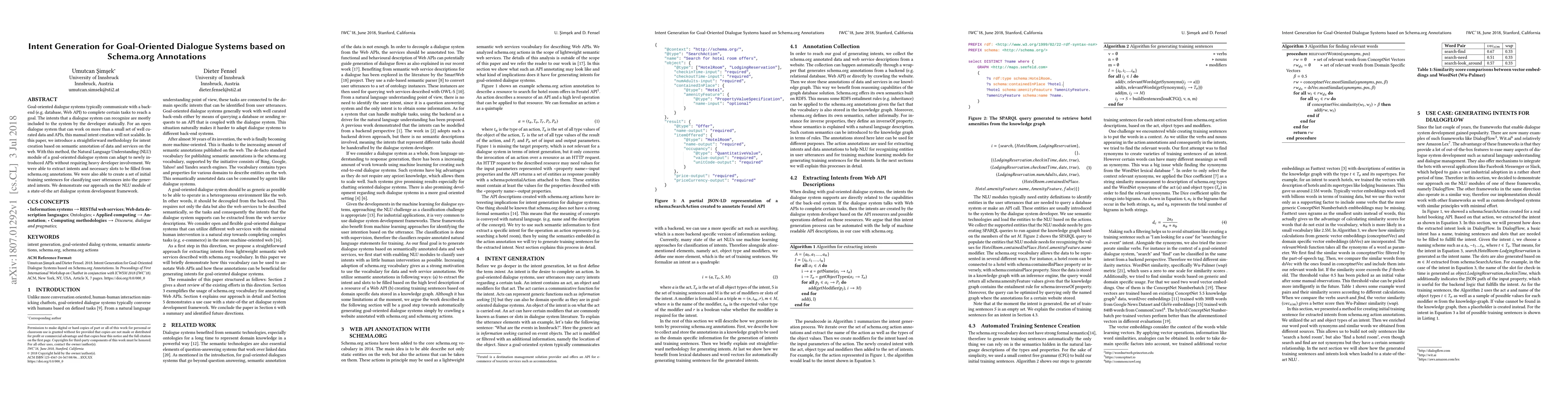 This paper proposes a method for dynamically generating intents for goal-oriented dialogue systems using semantic annotations from schema.org. The approach enables the Natural Language Understanding module to adapt to new APIs with minimal developer intervention.