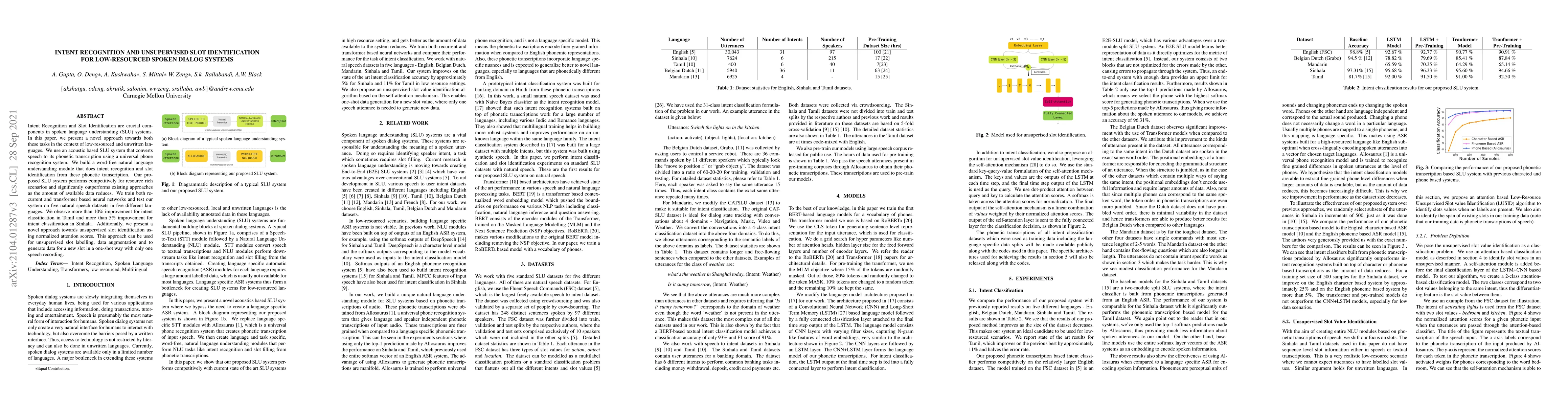 This paper introduces an innovative acoustic-based spoken language understanding (SLU) system for low-resourced and unwritten languages, achieving competitive intent recognition and unsupervised slot identification without relying on extensive labeled data. The system notably outperforms existing methods as data availability decreases, demonstrating significant improvements in intent classification for Tamil and Sinhala.
