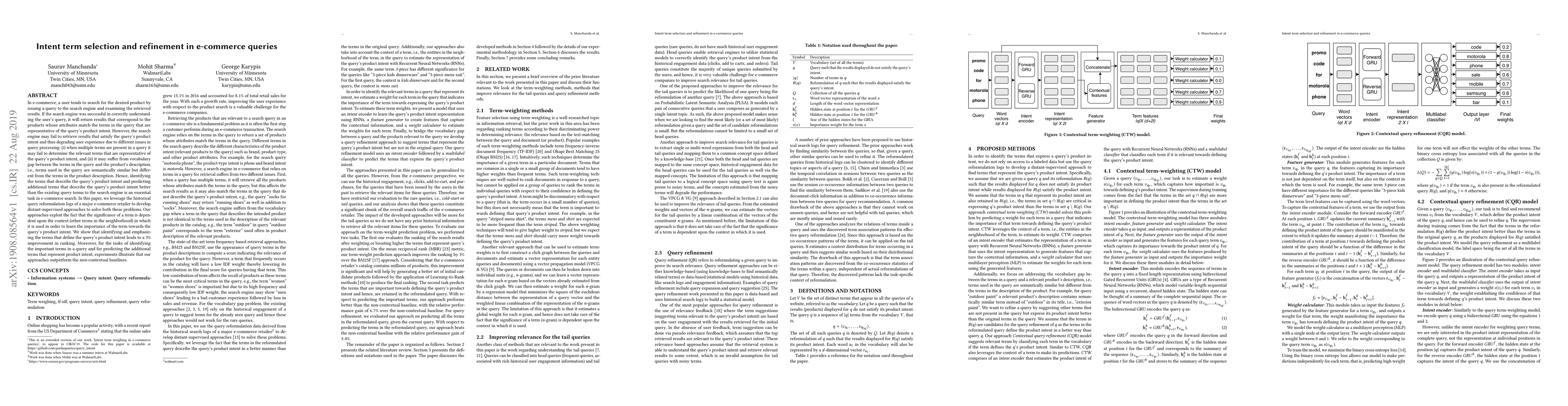 This paper develops distant-supervised approaches to identify and refine terms in e-commerce search queries to better match product intent, improving ranking by 3%. The methods outperform non-contextual baselines by considering the contextual significance of query terms.