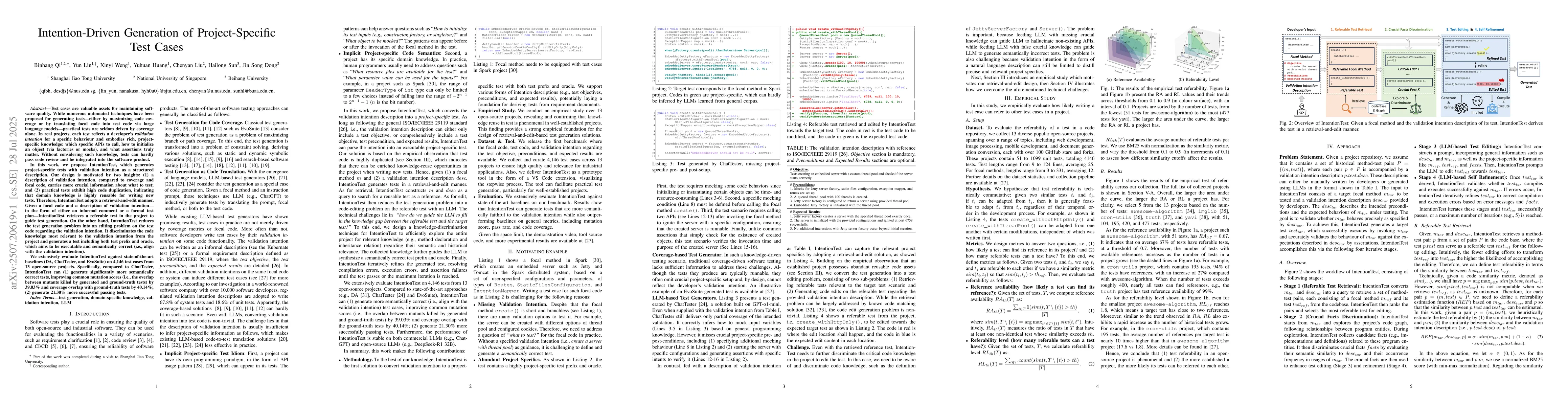 Test cases are valuable assets for maintaining software quality. While numerous automated techniques have been proposed for generating tests (either by maximizing code coverage or by translating focal code into test code), practical tests are seldom driven by coverage alone. In real projects, each test reflects a developer's validation intention for a specific behaviour and embodies rich, project-specific knowledge: which specific APIs to call and what assertions truly matter. Without considering such knowledge, tests can hardly pass code review and be integrated into the software product. In this work, we propose IntentionTest, which generates project-specific tests with validation intention as a structured description. Our design is motivated by two insights: (1) a description of validation intention, compared to coverage and focal code, carries more crucial information about what to test; and (2) practical tests exhibit high code duplication, indicating that domain knowledge is highly reusable for writing new tests. Given a focal code and a description of validation intention (in the form of either an informal comment or a formal test plan), IntentionTest retrieves a referable test in the project to guide test generation. Moreover, IntentionTest reduces the test generation problem into an editing problem on the test code regarding the validation intention. It generates a test including both test prefix and oracle, which aims to be executable and semantically correct. We evaluate IntentionTest against state-of-the-art baselines on 4,146 test cases from 13 open-source projects. Specifically, compared to ChatTester, IntentionTest can (1) generate significantly more semantically correct tests, improving common mutation scores by 39.03% and coverage overlap with ground-truth tests by 40.14%; (2) generate 21.30% more successful passing tests.