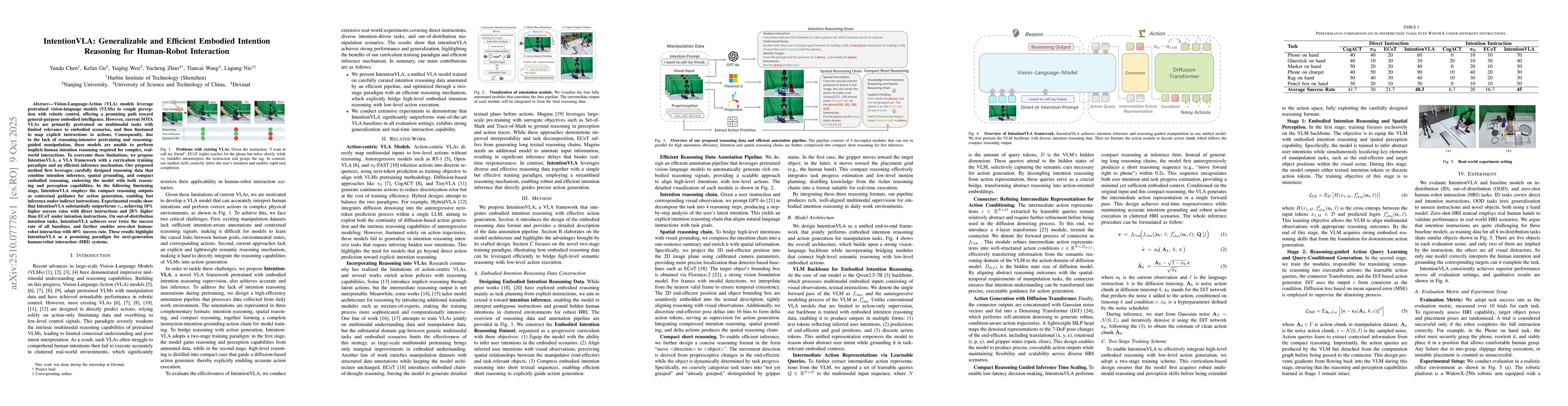 The research introduces IntentionVLA, a novel vision-language-action (VLA) model that integrates intention reasoning, spatial grounding, and compact embodied reasoning. It employs a two-stage training paradigm: pretraining on diverse reasoning data followed by action fine-tuning using compact reasoning as efficient guidance.