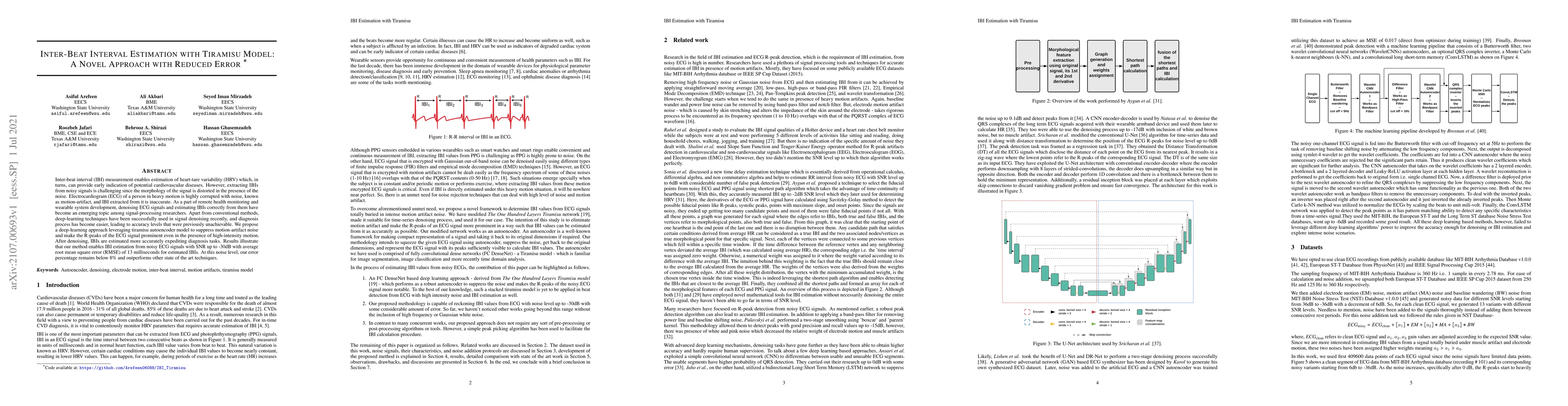 This paper proposes a novel deep-learning approach using a tiramisu autoencoder model to denoise ECG signals and accurately estimate inter-beat intervals (IBIs) even in the presence of high-motion artifact noise. The method achieves an average RMSE of 13 milliseconds and outperforms other techniques, demonstrating significant potential for remote health monitoring.