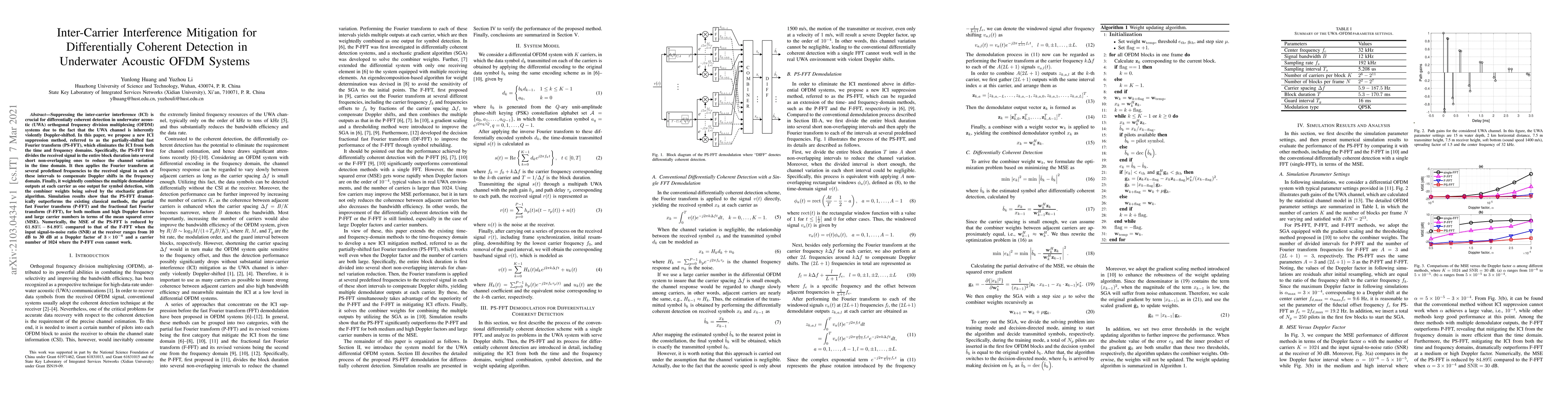 This paper proposes a new inter-carrier interference (ICI) suppression method called partially-shifted fast Fourier transform (PS-FFT) for differentially coherent detection in underwater acoustic OFDM systems. The PS-FFT divides the signal into short intervals to reduce time-domain channel variation and applies Fourier transform at predefined frequencies to compensate for Doppler shifts, achieving significant MSE reduction compared to existing methods.