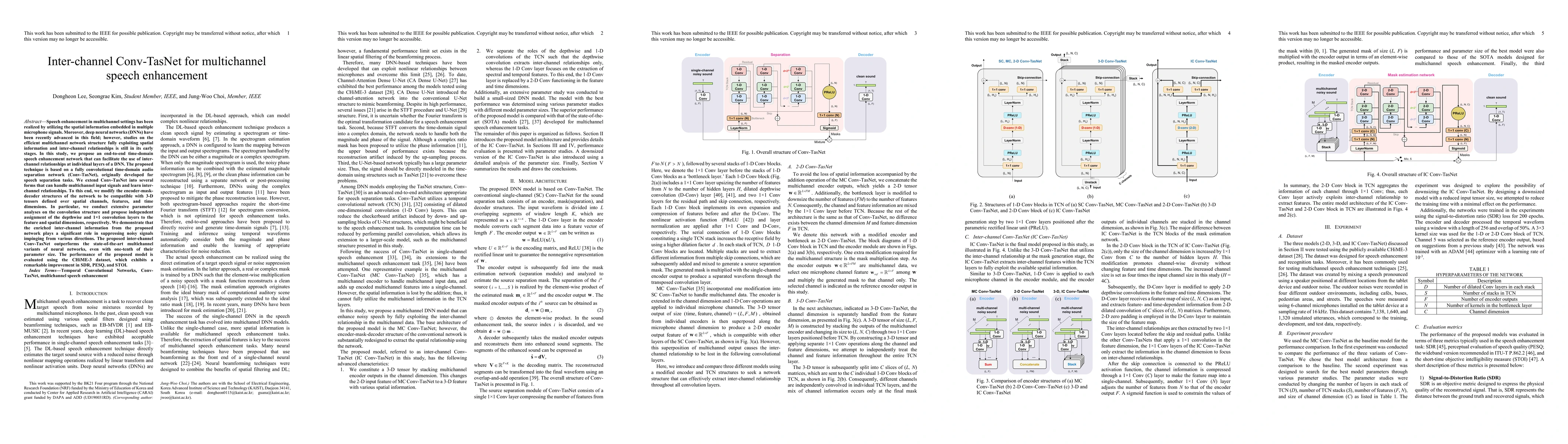 This paper proposes an inter-channel Conv-TasNet for multichannel speech enhancement, leveraging spatial information across multiple microphone signals. The extended Conv-TasNet model learns inter-channel relationships efficiently, achieving superior performance in noise suppression and signal quality improvement compared to other neural network approaches, despite having significantly fewer parameters.