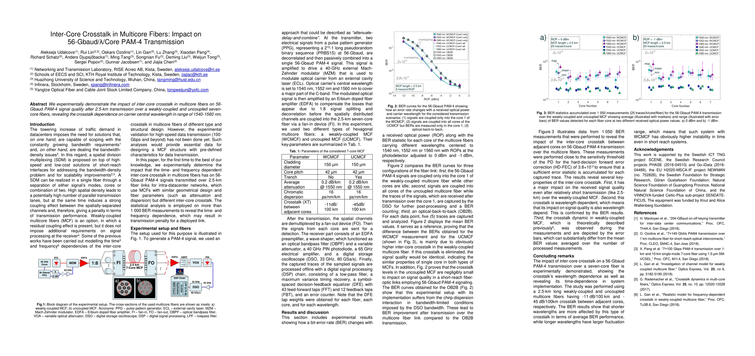 This paper investigates the effect of inter-core crosstalk in multicore fibers on 56Gbaud PAM-4 signal quality over 2.5 km, finding that crosstalk varies with carrier central wavelength and is more pronounced in weakly-coupled fibers.