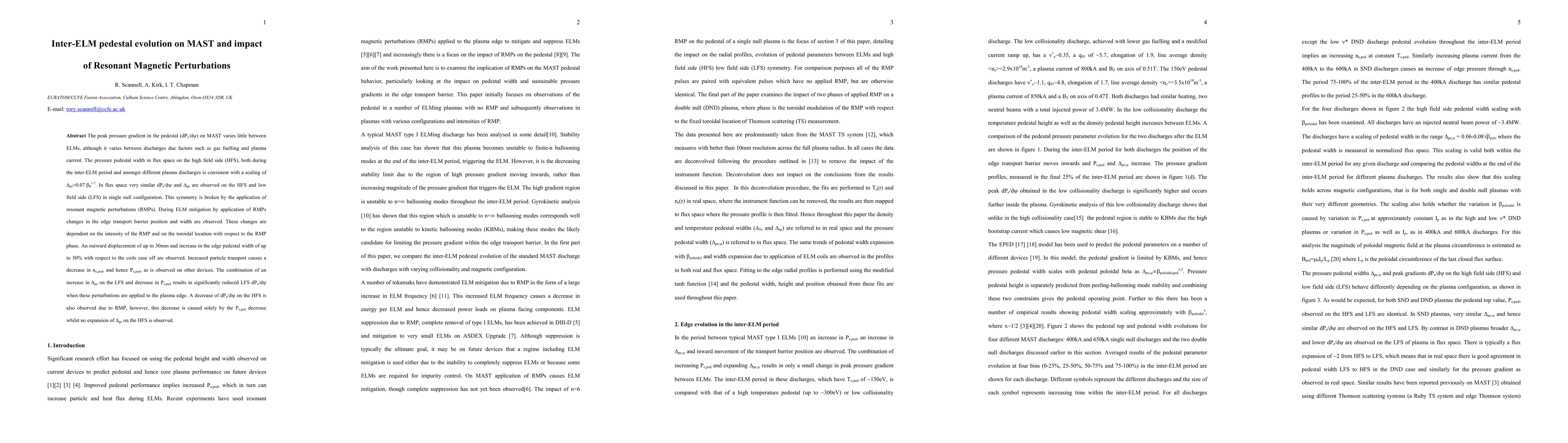 The paper presents detailed analysis of pedestal evolution and the impact of RMPs on pedestal characteristics in MAST, contributing to the understanding of edge plasma stability and transport in tokamaks.