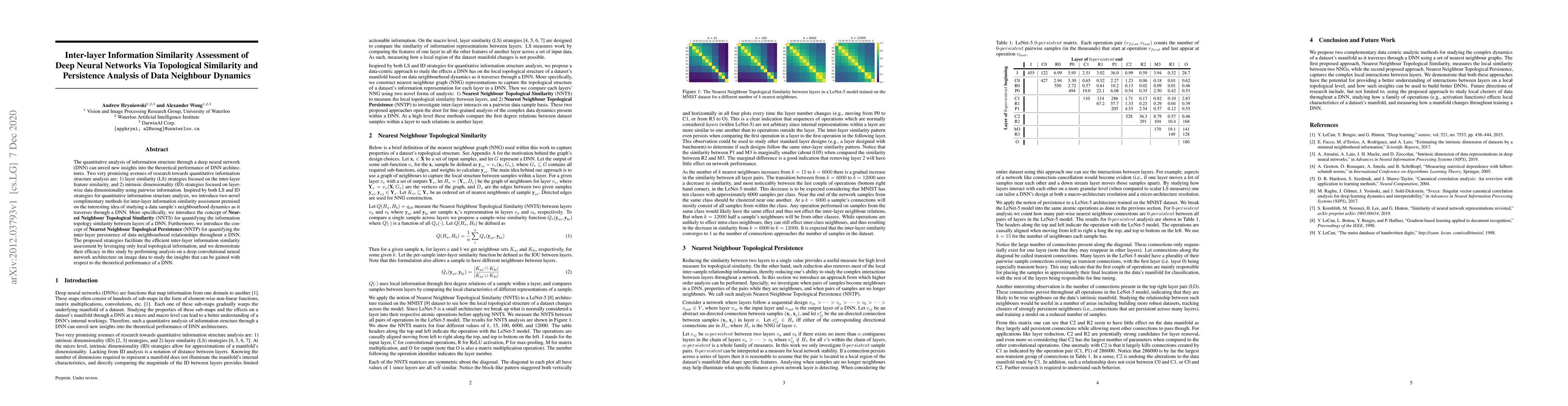 The quantitative analysis of information structure through a deep neural network (DNN) can unveil new insights into the theoretical performance of DNN architectures. Two very promising avenues of research towards quantitative information structure analysis are: 1) layer similarity (LS) strategies focused on the inter-layer feature similarity, and 2) intrinsic dimensionality (ID) strategies focused on layer-wise data dimensionality using pairwise information. Inspired by both LS and ID strategies for quantitative information structure analysis, we introduce two novel complimentary methods for inter-layer information similarity assessment premised on the interesting idea of studying a data sample's neighbourhood dynamics as it traverses through a DNN. More specifically, we introduce the concept of Nearest Neighbour Topological Similarity (NNTS) for quantifying the information topology similarity between layers of a DNN. Furthermore, we introduce the concept of Nearest Neighbour Topological Persistence (NNTP) for quantifying the inter-layer persistence of data neighbourhood relationships throughout a DNN. The proposed strategies facilitate the efficient inter-layer information similarity assessment by leveraging only local topological information, and we demonstrate their efficacy in this study by performing analysis on a deep convolutional neural network architecture on image data to study the insights that can be gained with respect to the theoretical performance of a DNN.