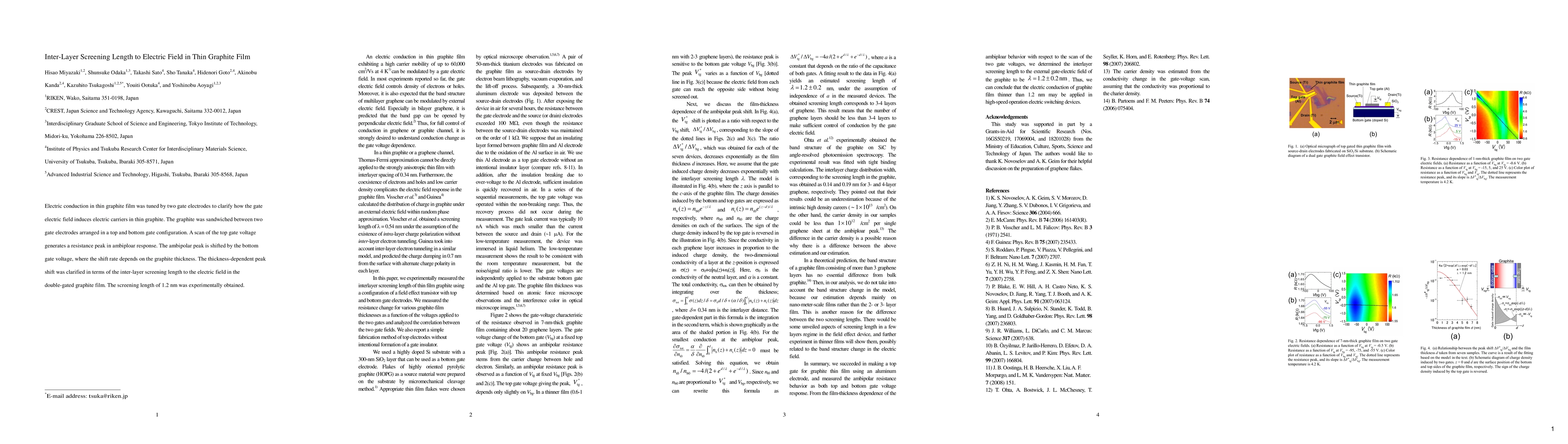 This research investigates the influence of dual gate electrodes on electric conduction in thin graphite films, identifying a resistance peak in an ambipolar response. The peak's shift, depending on graphite thickness, is elucidated in terms of the inter-layer screening length to the electric field, with an experimentally determined value of 1.2 nm.