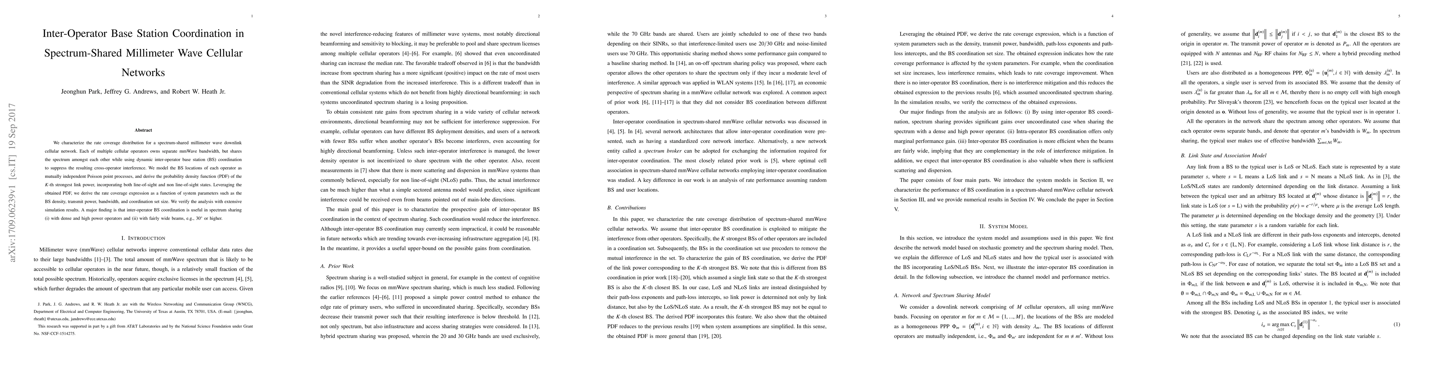 We characterize the rate coverage distribution for a spectrum-shared millimeter wave downlink cellular network. Each of multiple cellular operators owns separate mmWave bandwidth, but shares the spectrum amongst each other while using dynamic inter-operator base station (BS) coordination to suppress the resulting cross-operator interference. We model the BS locations of each operator as mutually independent Poisson point processes, and derive the probability density function (PDF) of the K-th strongest link power, incorporating both line-of-sight and non line-of-sight states. Leveraging the obtained PDF, we derive the rate coverage expression as a function of system parameters such as the BS density, transmit power, bandwidth, and coordination set size. We verify the analysis with extensive simulation results. A major finding is that inter-operator BS coordination is useful in spectrum sharing (i) with dense and high power operators and (ii) with fairly wide beams, e.g., 30 or higher.