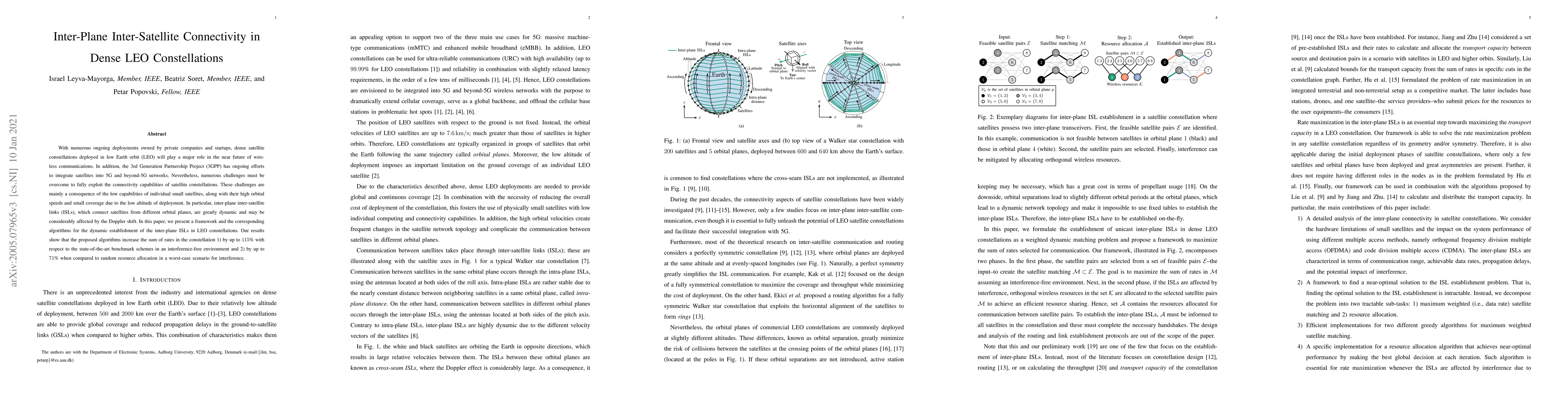 With numerous ongoing deployments owned by private companies and startups, dense satellite constellations deployed in low Earth orbit (LEO) will play a major role in the near future of wireless communications. In addition, the 3rd Generation Partnership Project (3GPP) has ongoing efforts to integrate satellites into 5G and beyond-5G networks. Nevertheless, numerous challenges must be overcome to fully exploit the connectivity capabilities of satellite constellations. These challenges are mainly a consequence of the low capabilities of individual small satellites, along with their high orbital speeds and small coverage due to the low altitude of deployment. In particular, inter-plane inter-satellite links (ISLs), which connect satellites from different orbital planes, are greatly dynamic and may be considerably affected by the Doppler shift. In this paper, we present a framework and the corresponding algorithms for the dynamic establishment of the inter-plane ISLs in LEO constellations. Our results show that the proposed algorithms increase the sum of rates in the constellation 1) by up to 115% with respect to the state-of-the-art benchmark schemes in an interference-free environment and 2) by up to 71% when compared to random resource allocation in a worst-case scenario for interference.